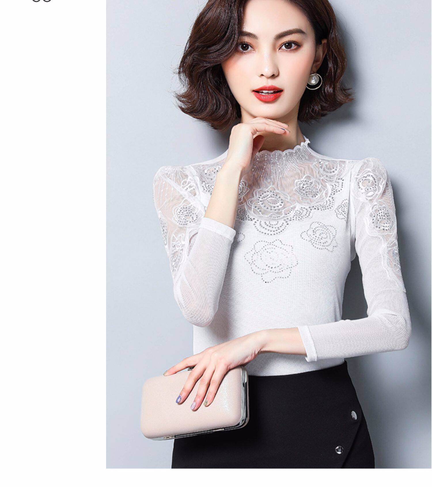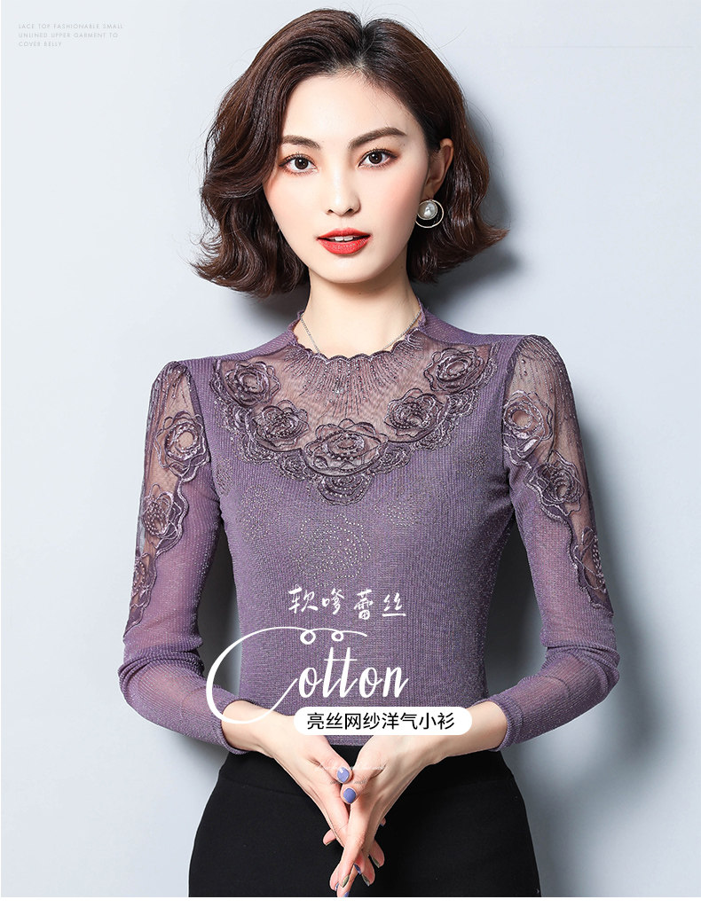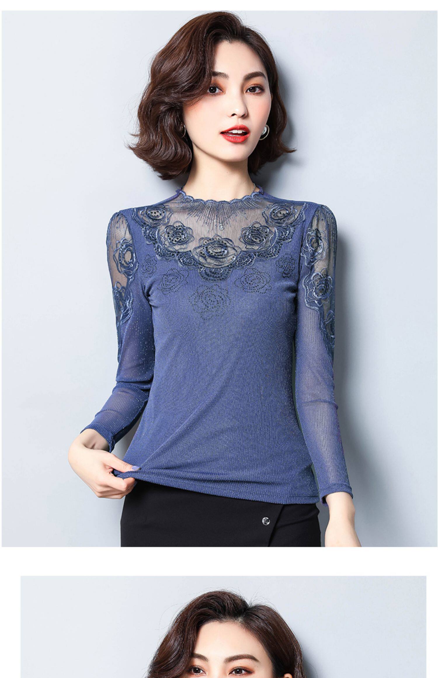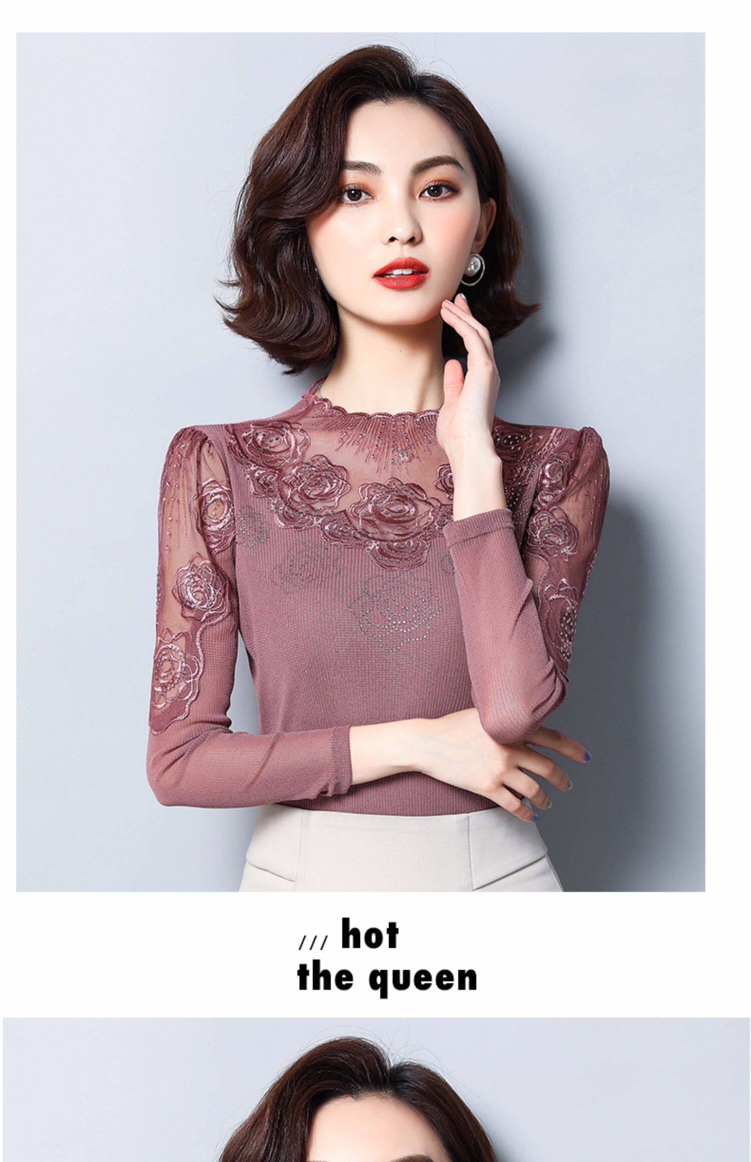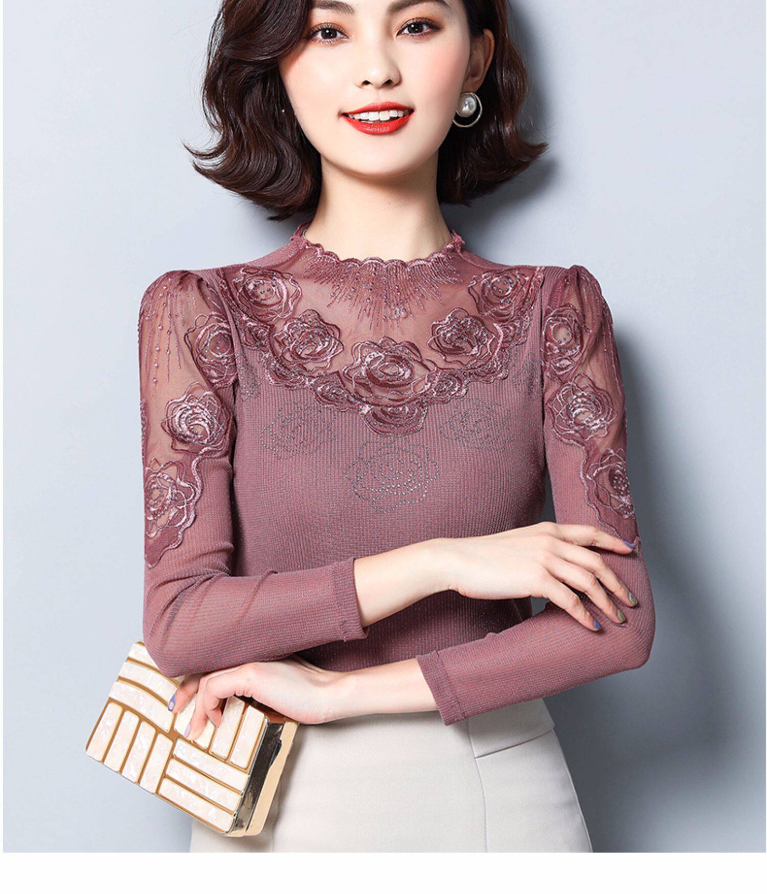 Базовый приятный телу осенний тонкий кружевной шелковый лонгслив, в западном стиле