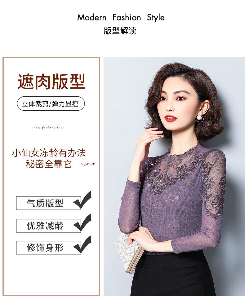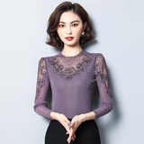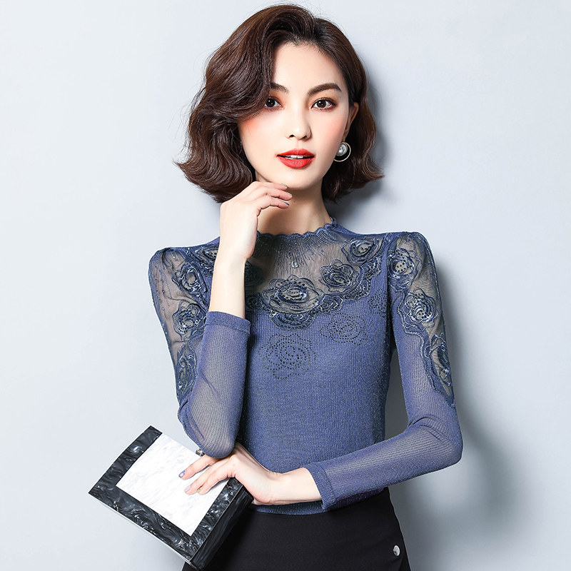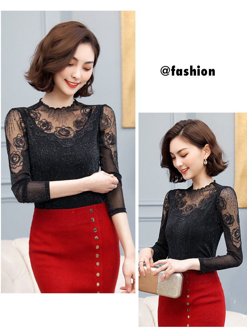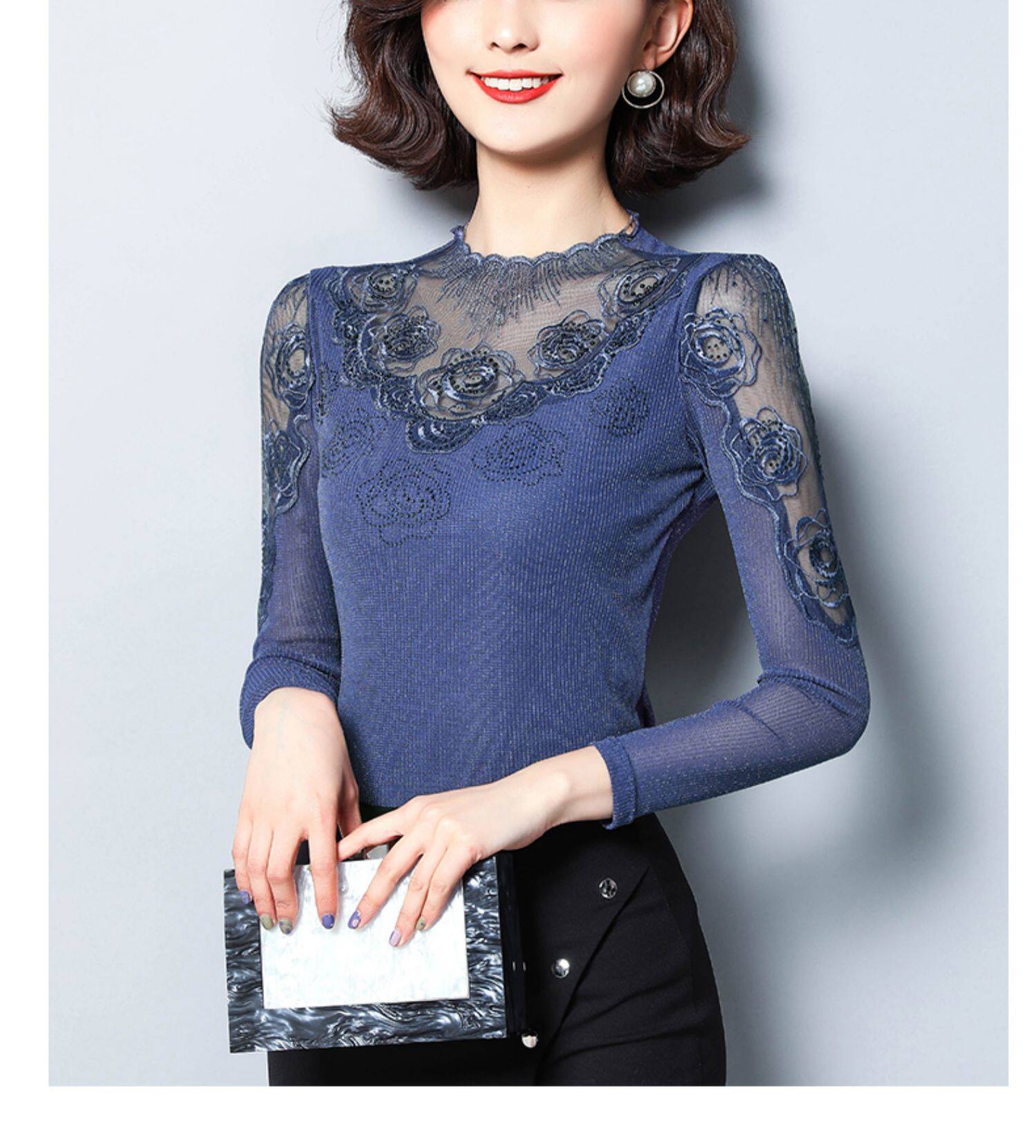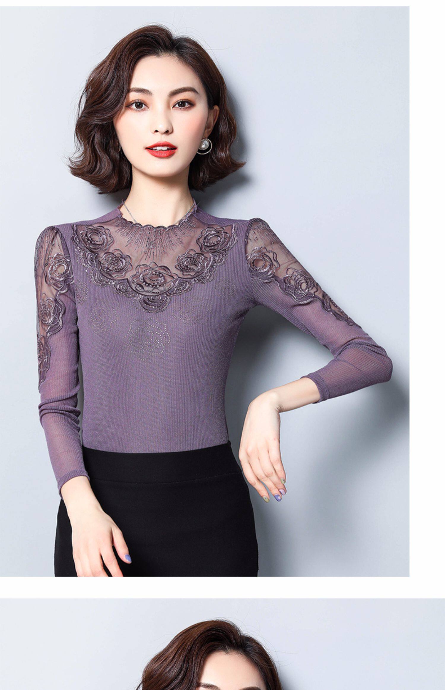 Базовый приятный телу осенний тонкий кружевной шелковый лонгслив, в западном стиле