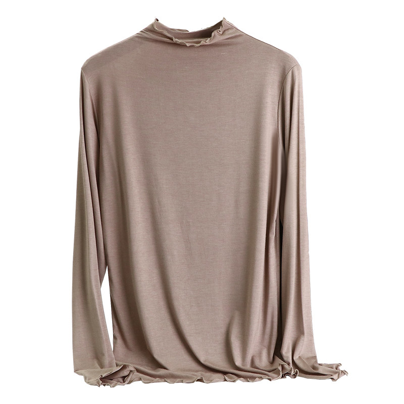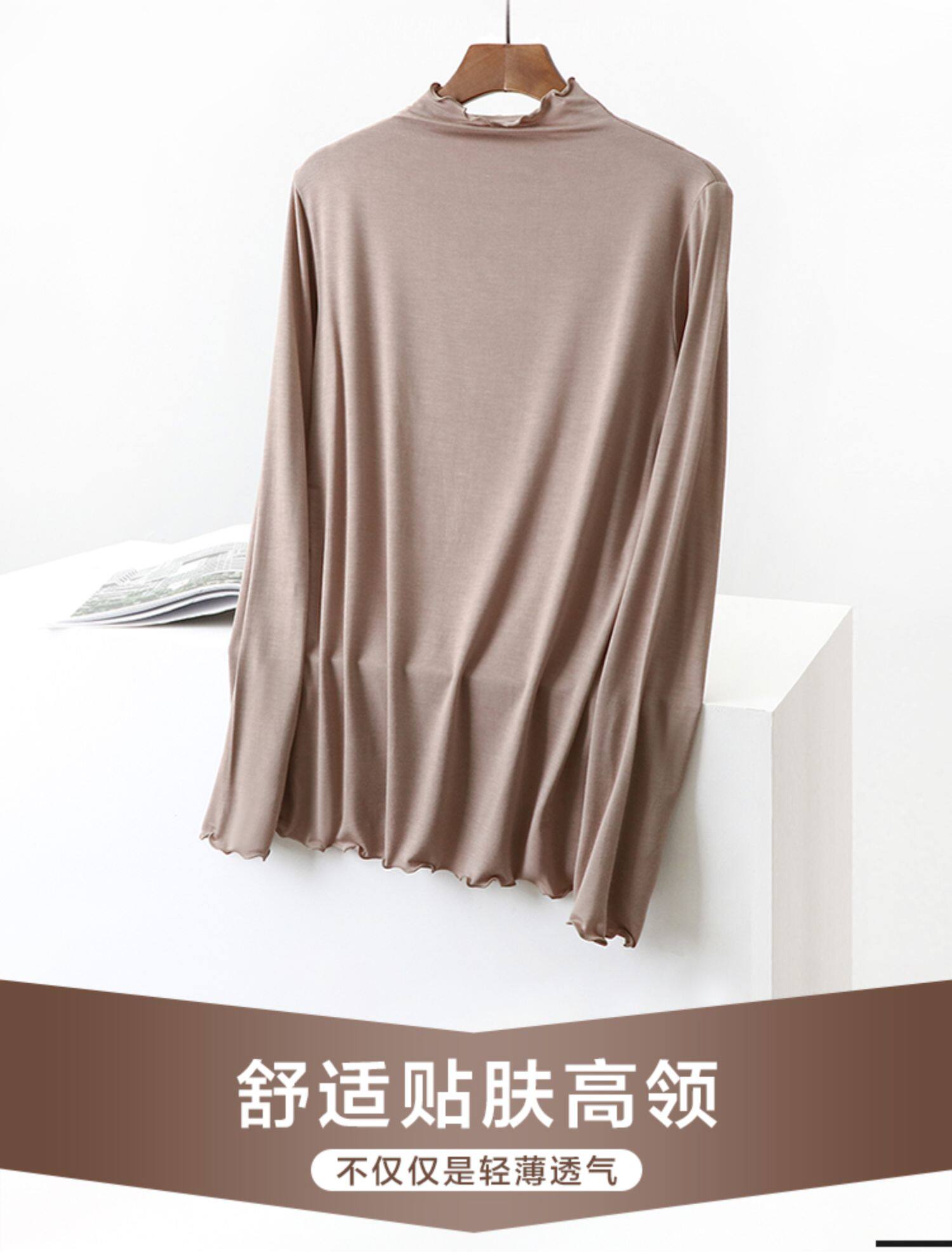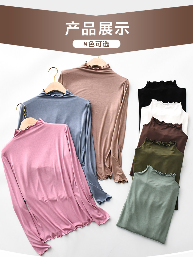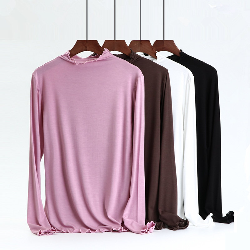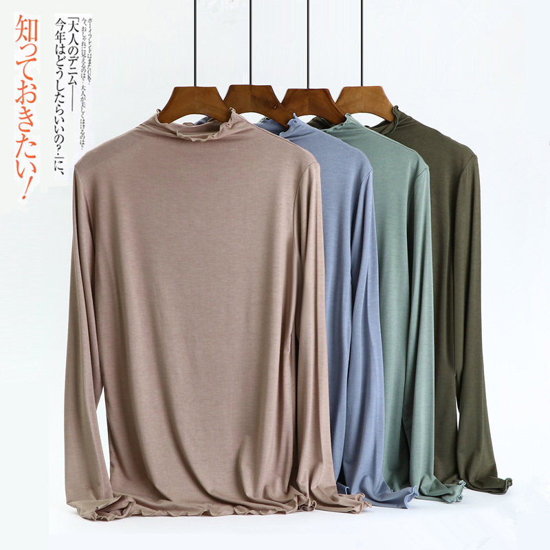 Осенний тонкий цветной базовый приятный телу приталенный лонгслив, высокий воротник