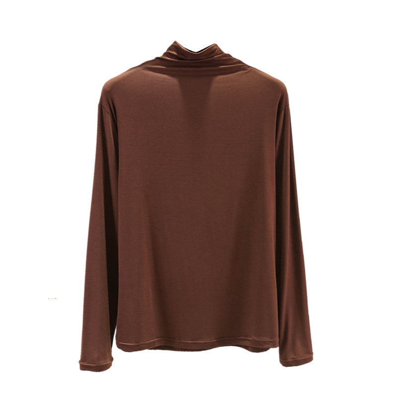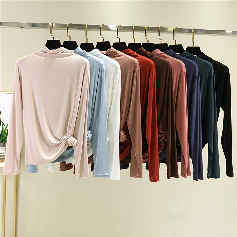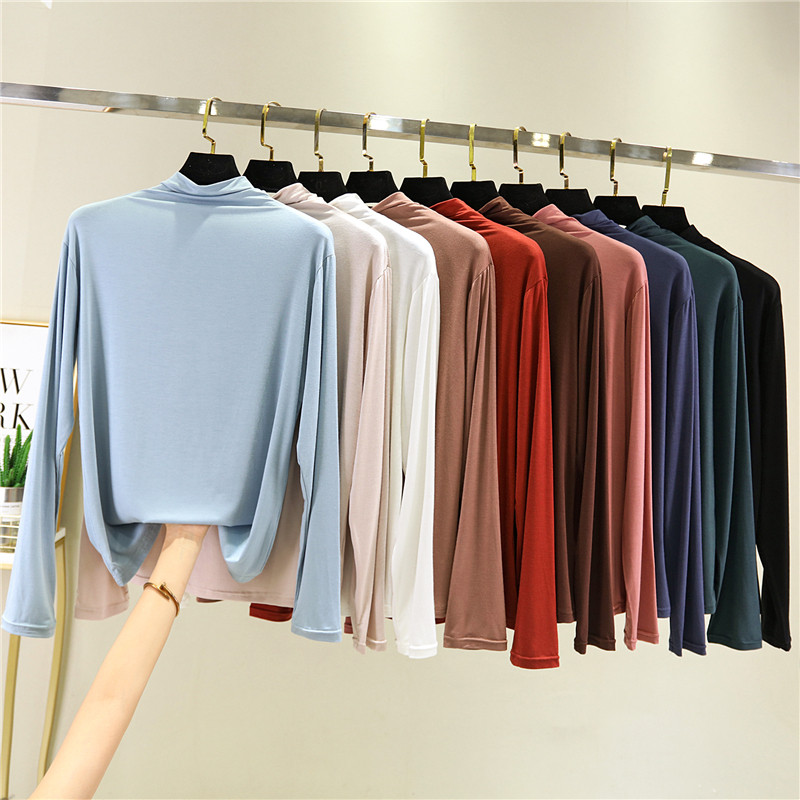 Осенняя футболка, базовый приятный телу тонкий лонгслив, высокий воротник, большой размер, по фигуре