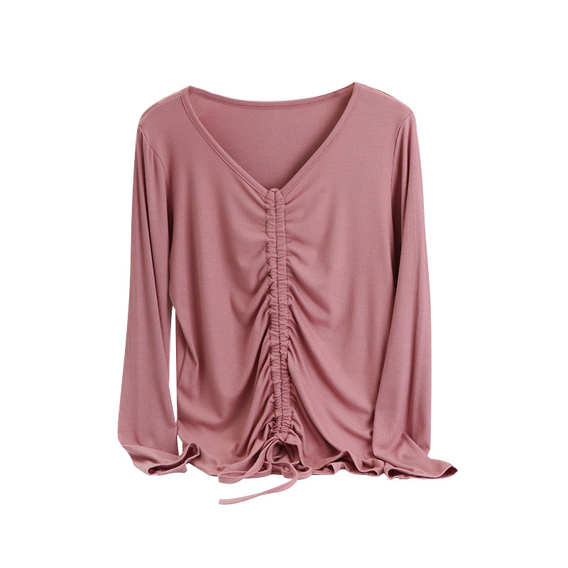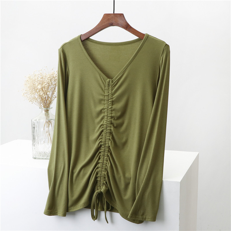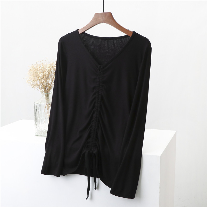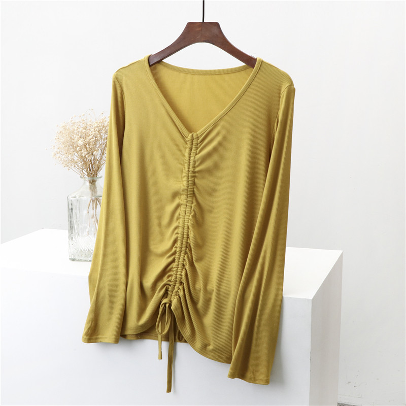 Лонгслив, осенняя базовая приятная телу футболка, на шнурках, V-образный вырез, 2020, по фигуре