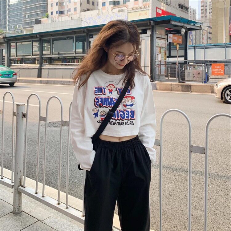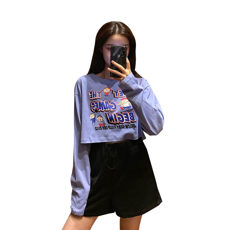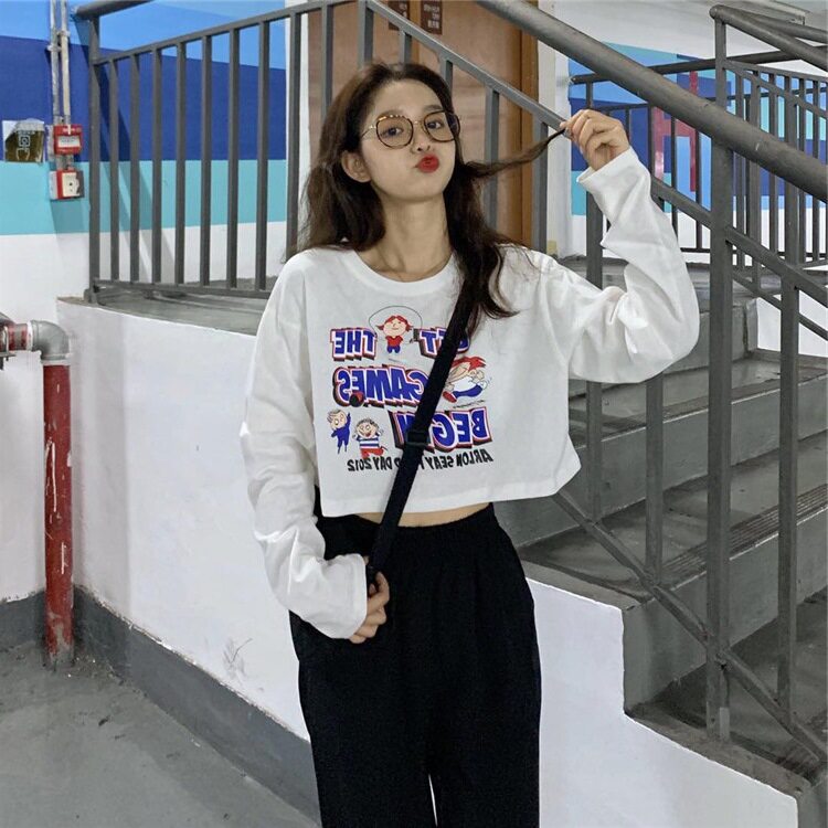 Брендовый короткий лонгслив, в корейском стиле, в западном стиле, свободный крой