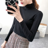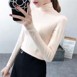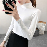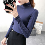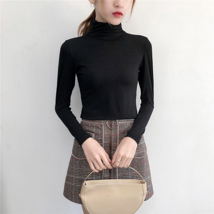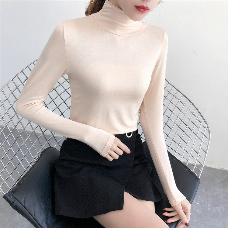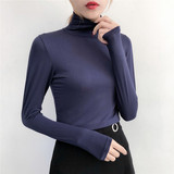 Базовый приятный телу демисезонный приталенный лонгслив, высокий воротник, в обтяжку, по фигуре
