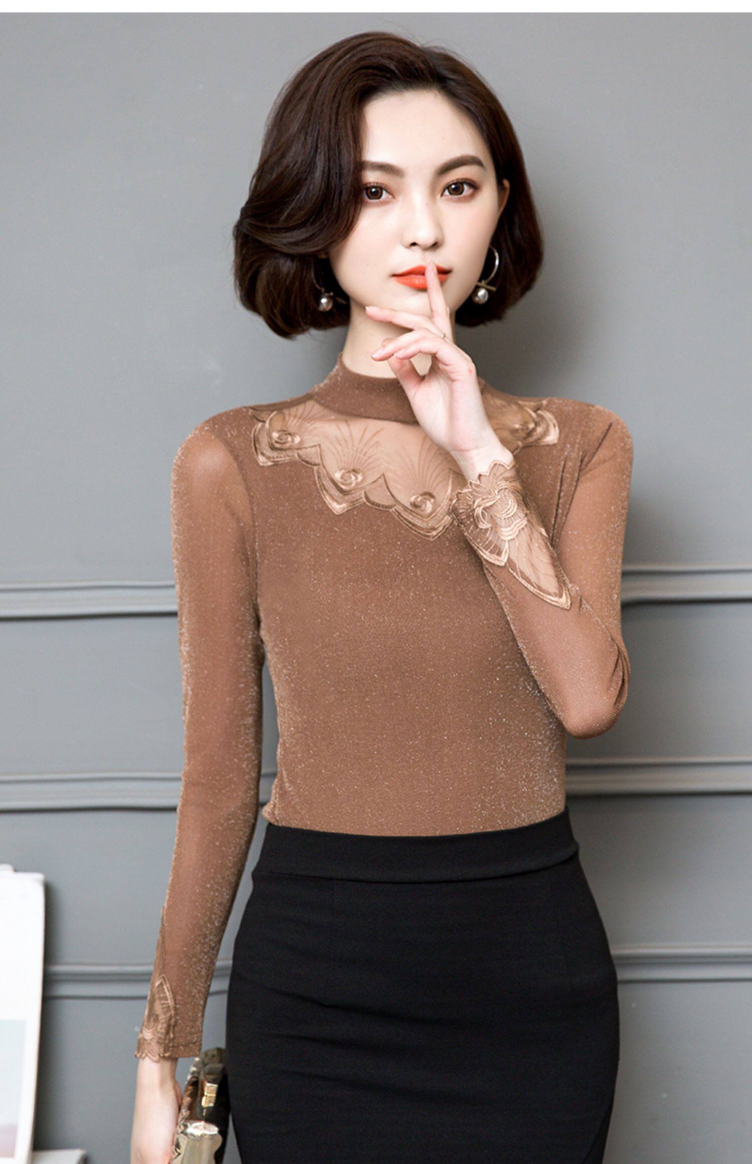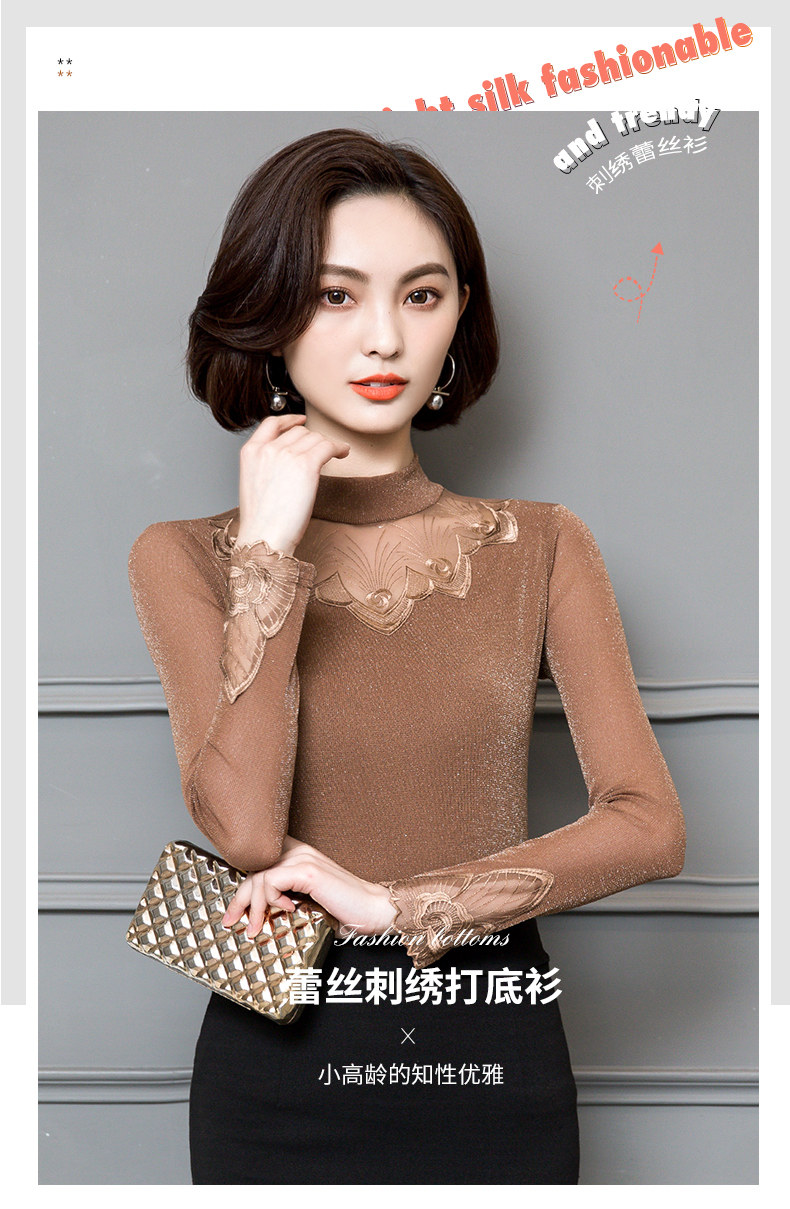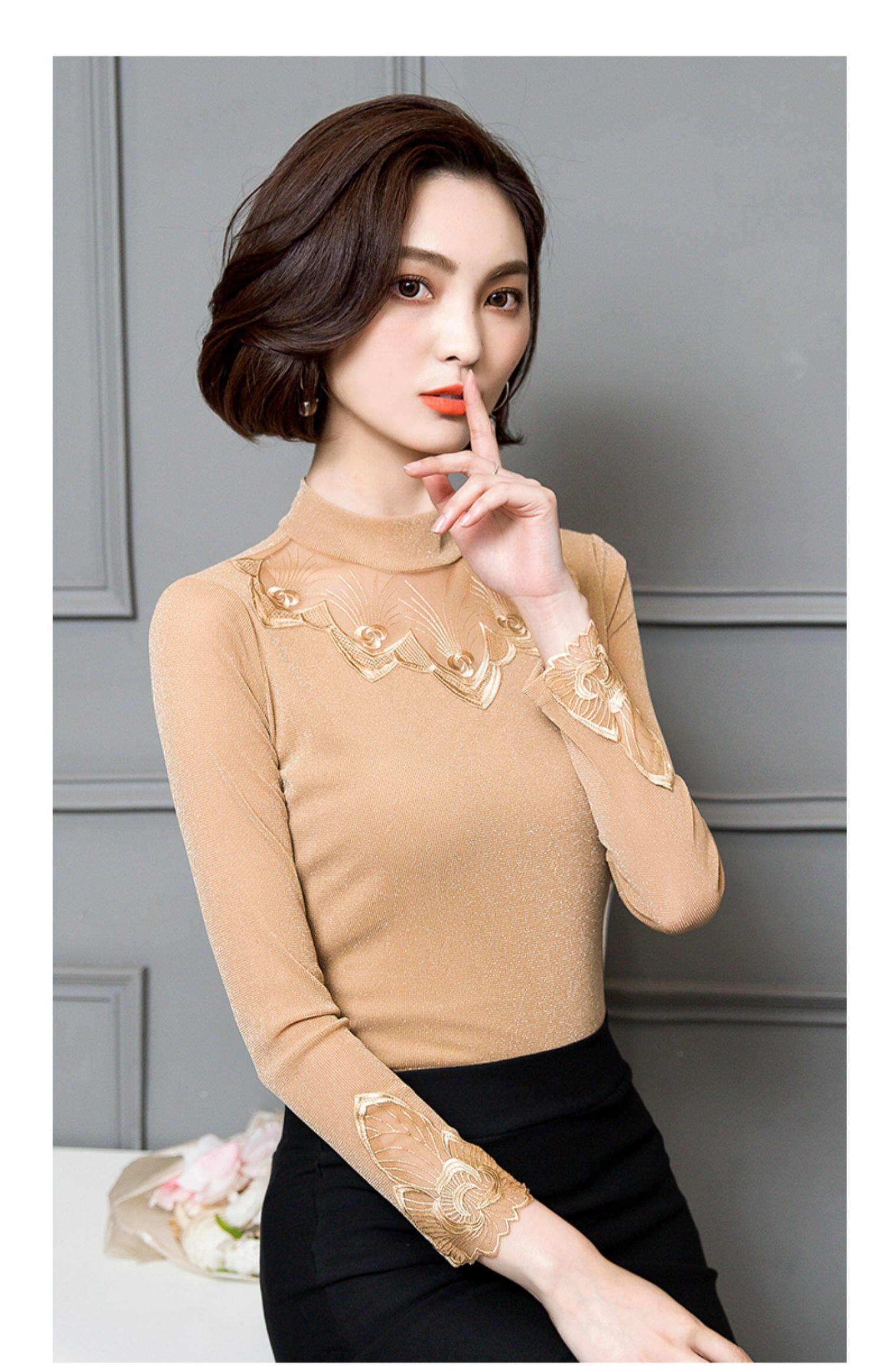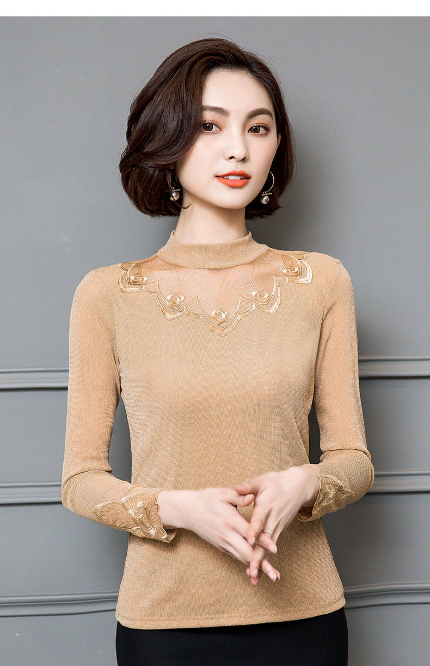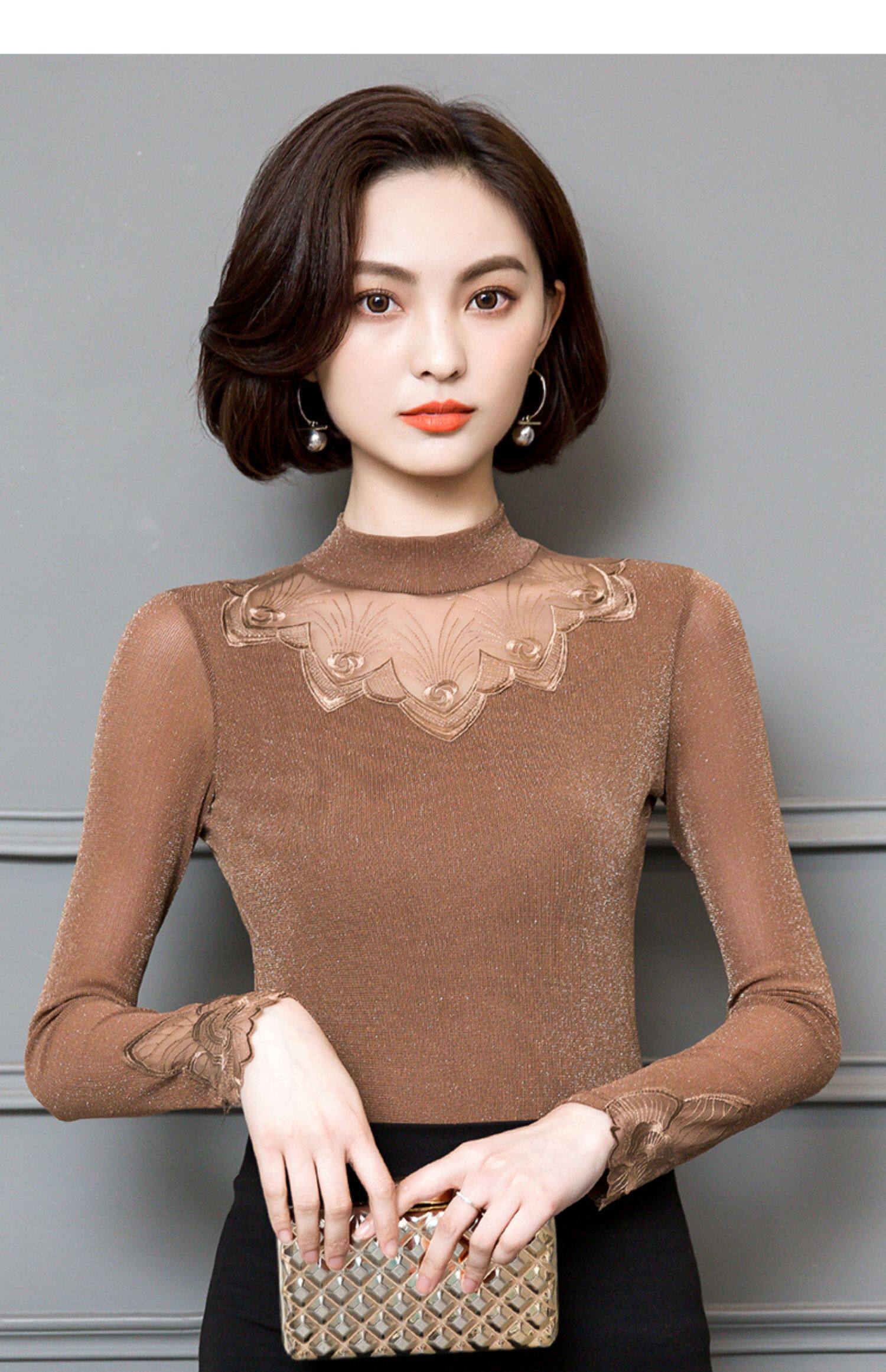 Базовый приятный телу кружевной шелковый лонгслив, футболка, в западном стиле