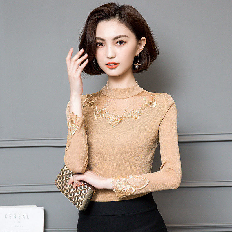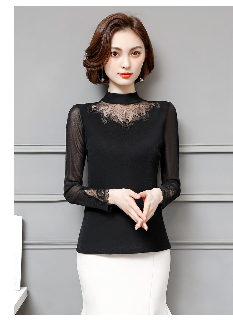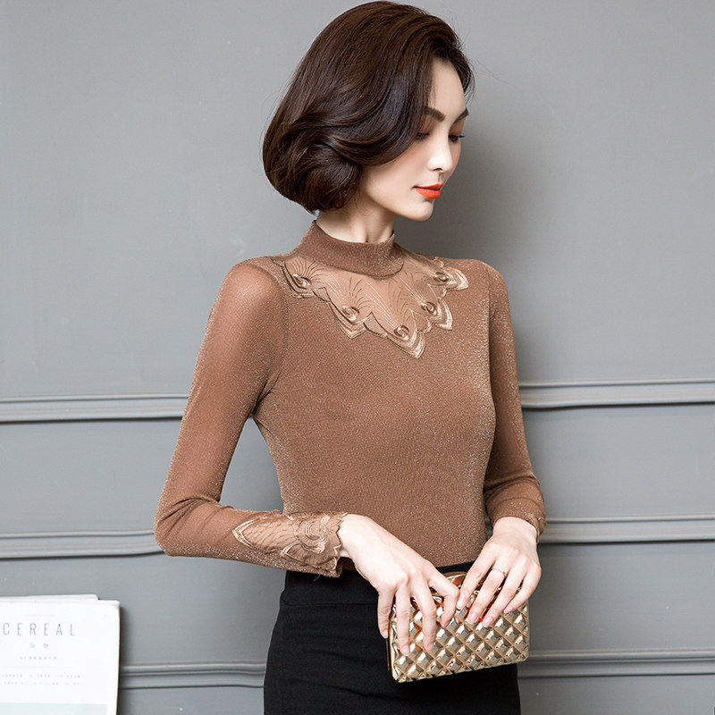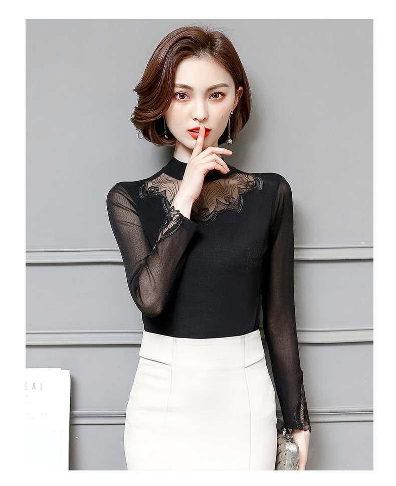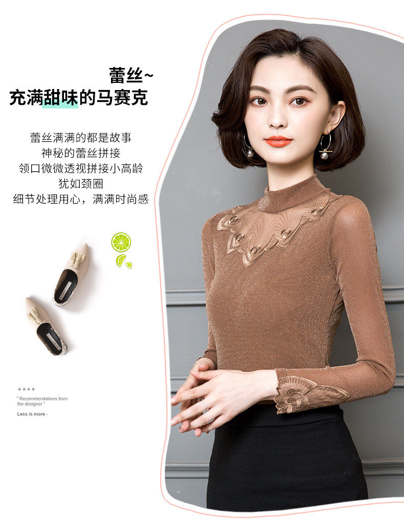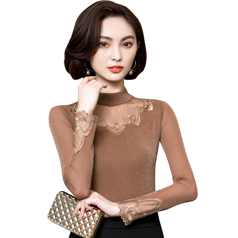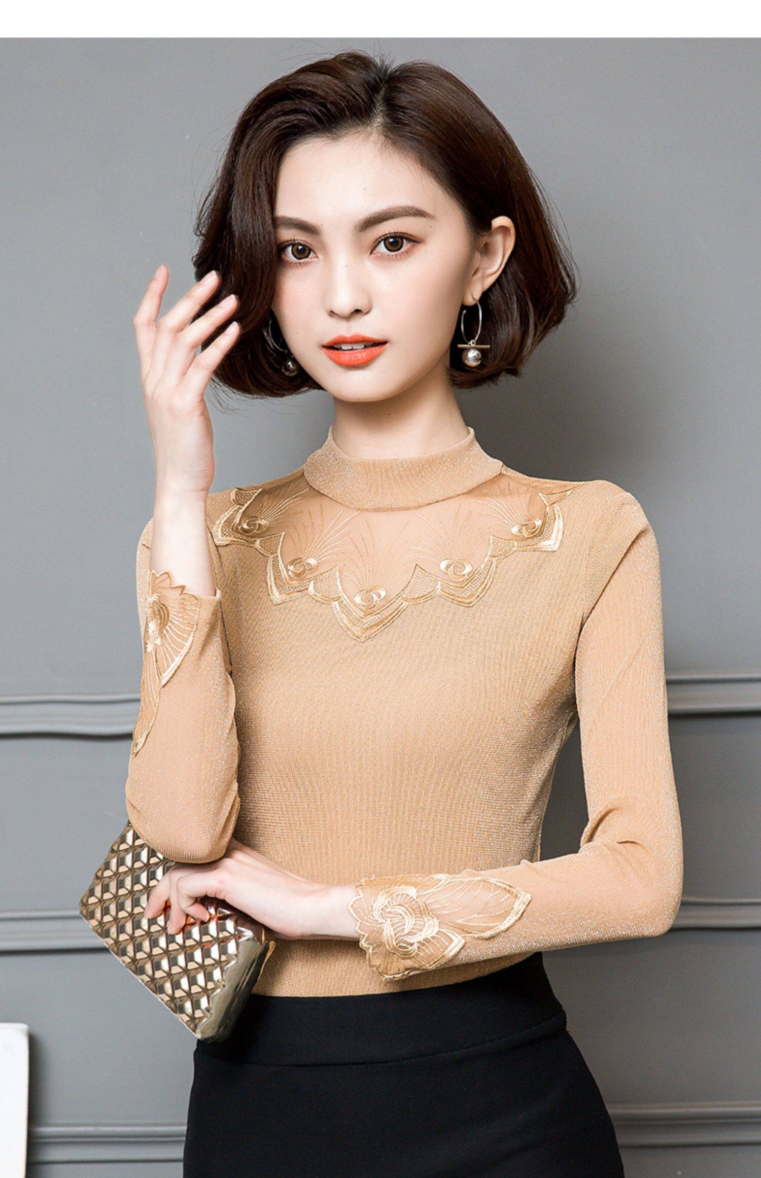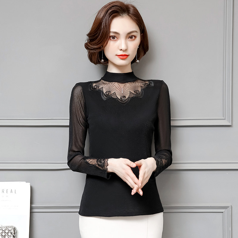 Базовый приятный телу кружевной шелковый лонгслив, футболка, в западном стиле