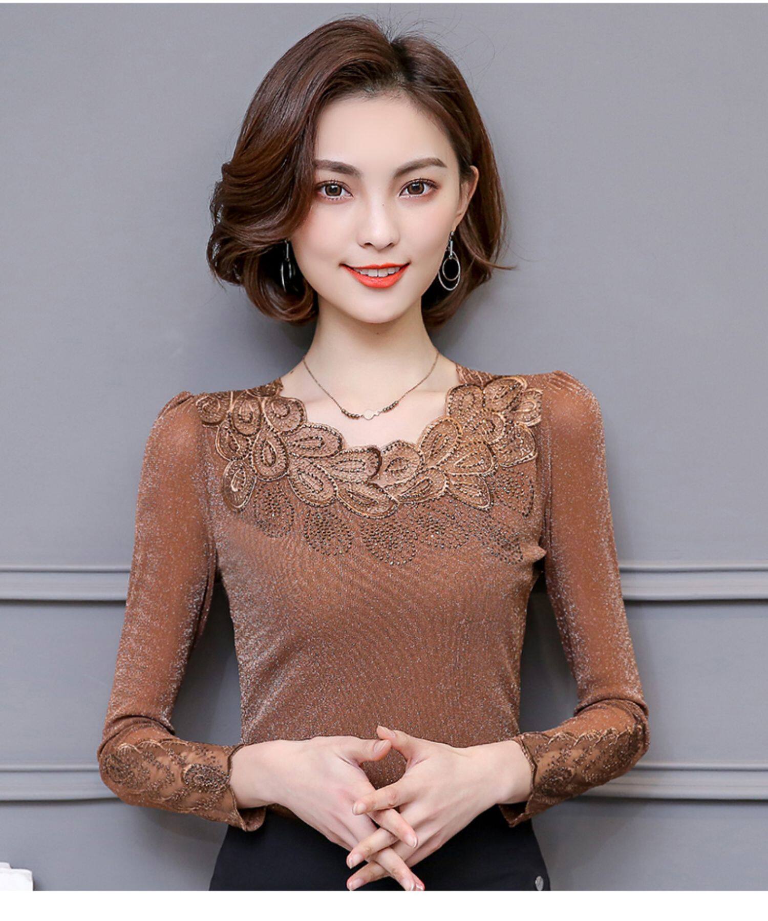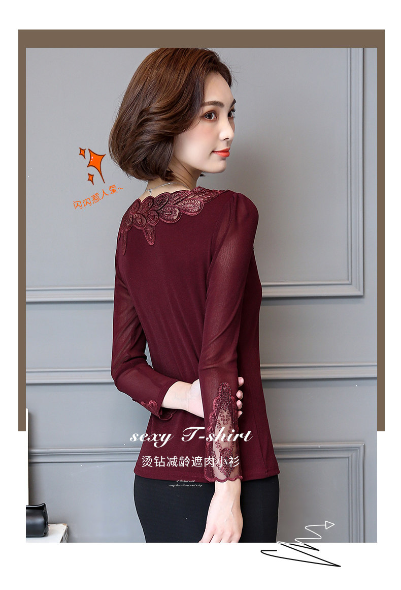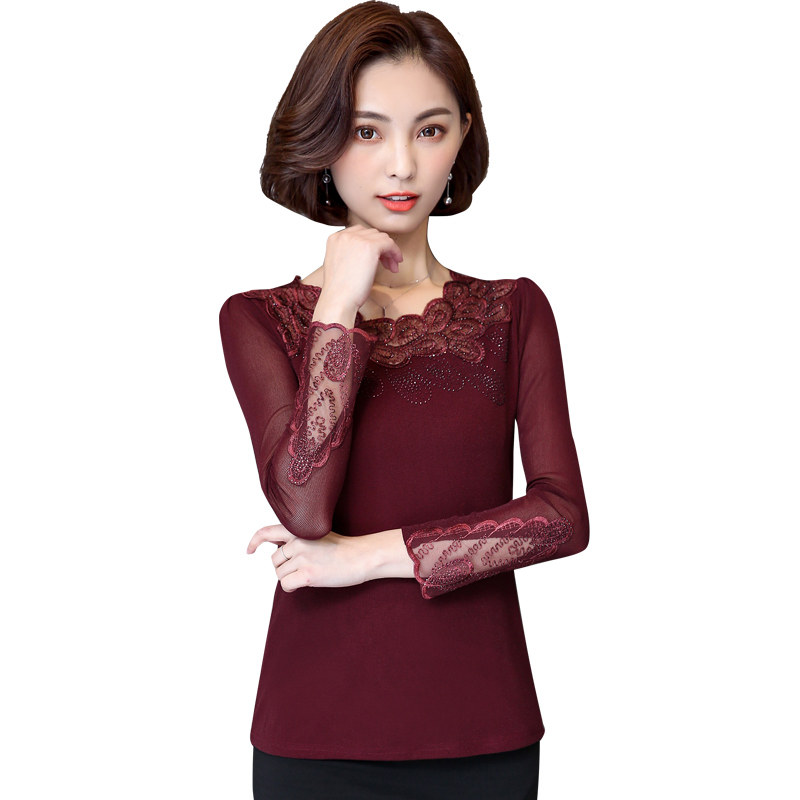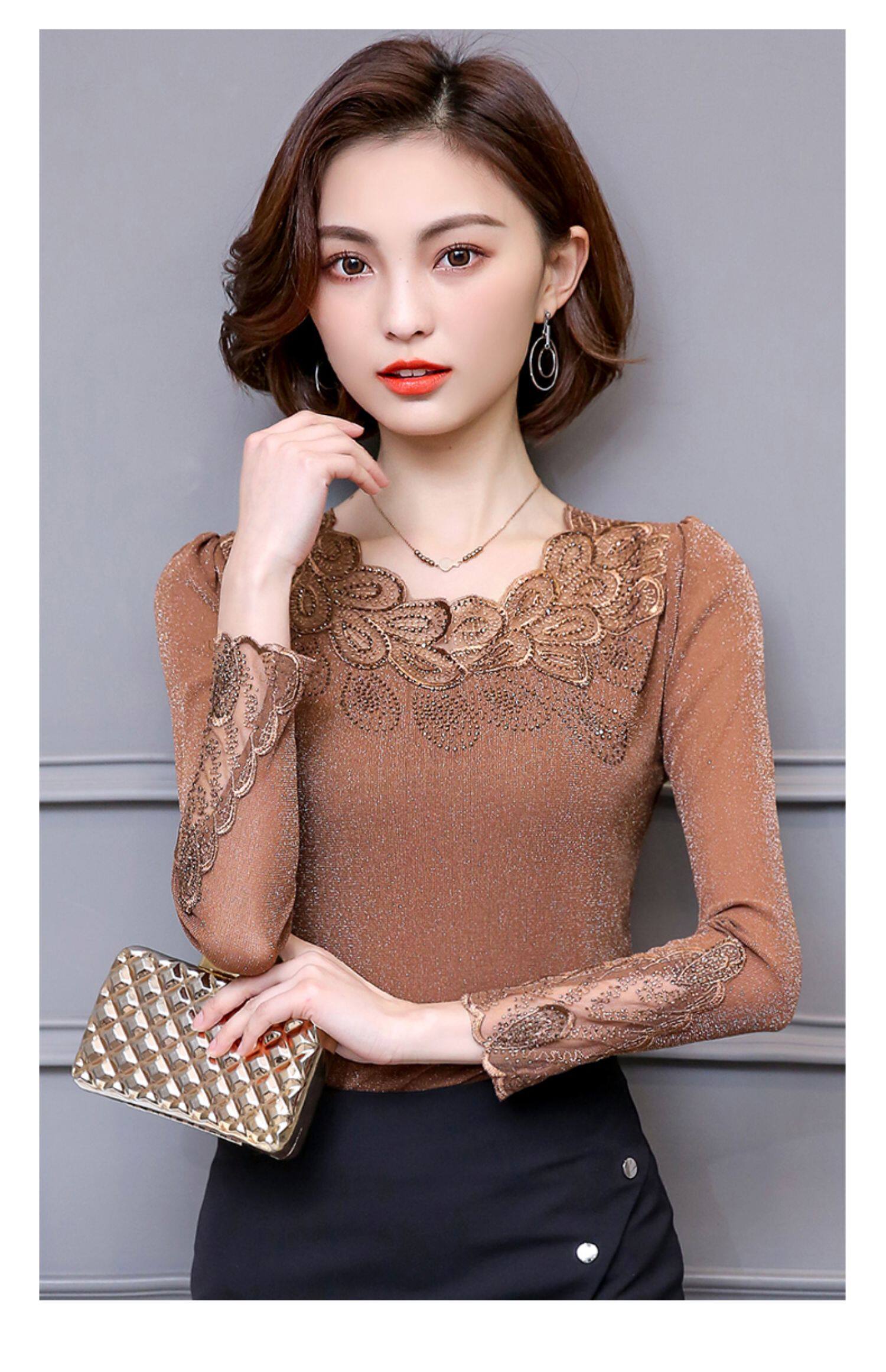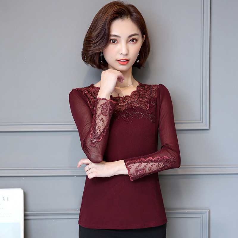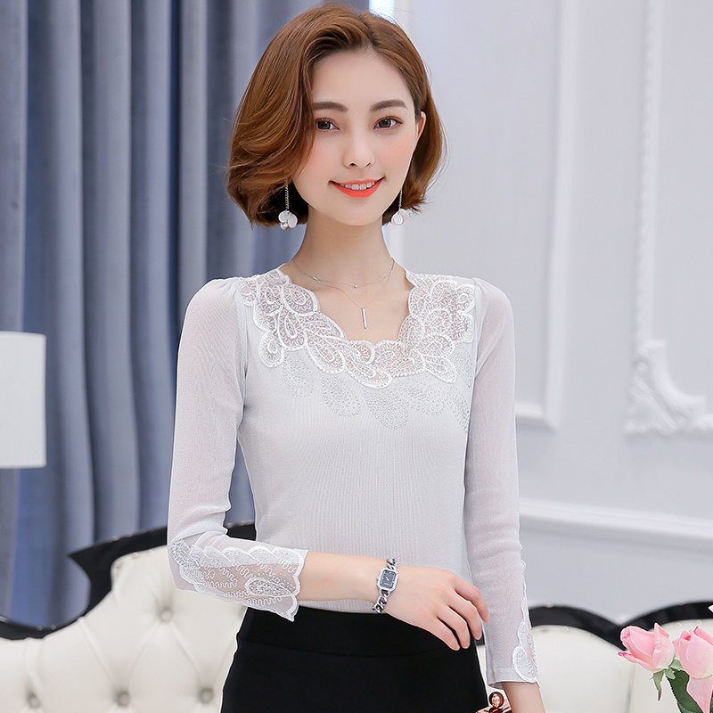 Кружевной шелковый приятный телу осенний лонгслив, футболка, в западном стиле