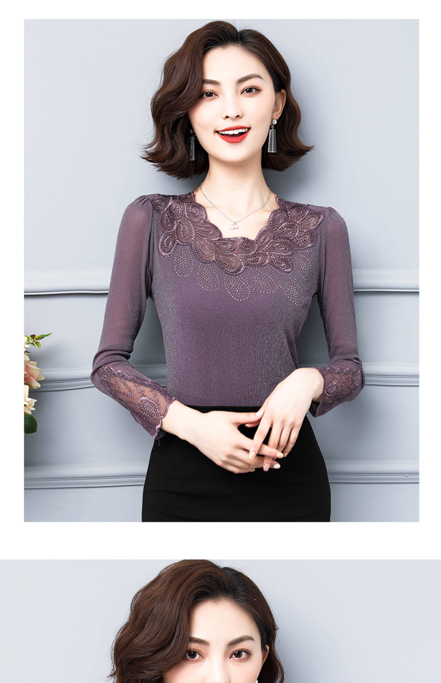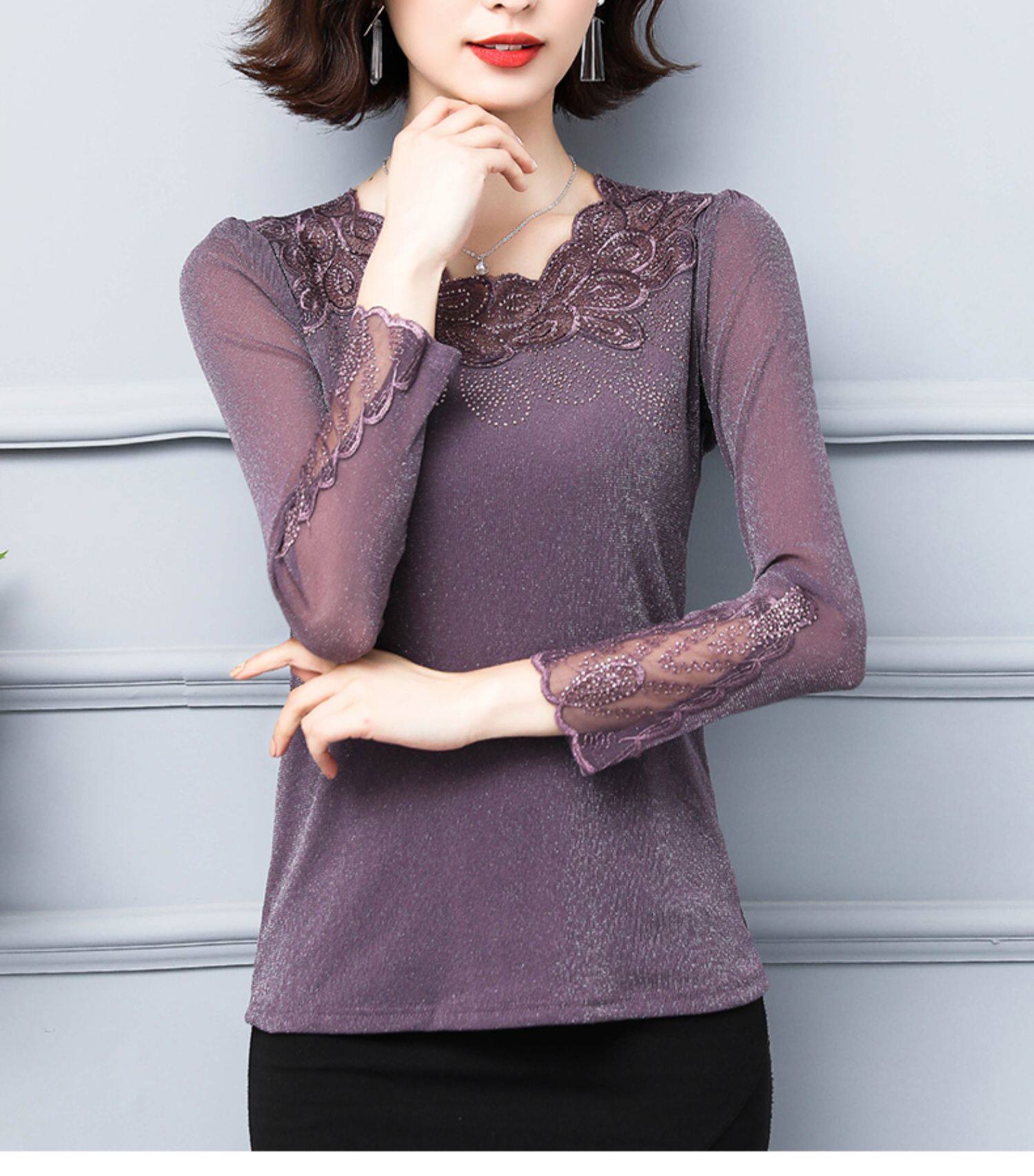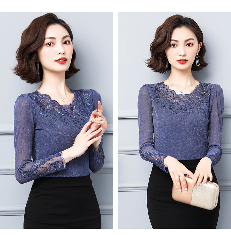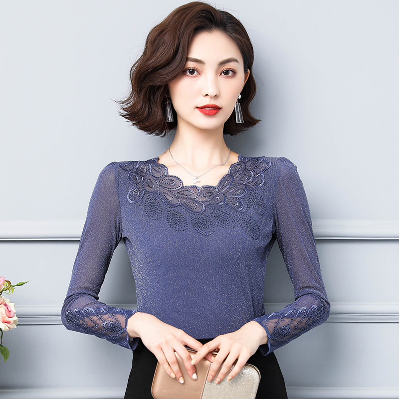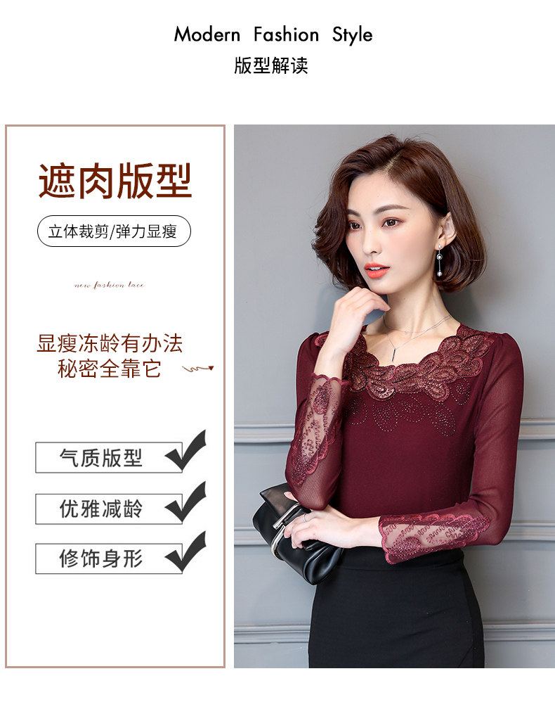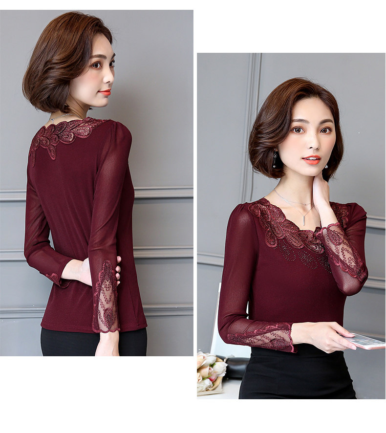 Кружевной шелковый приятный телу осенний лонгслив, футболка, в западном стиле