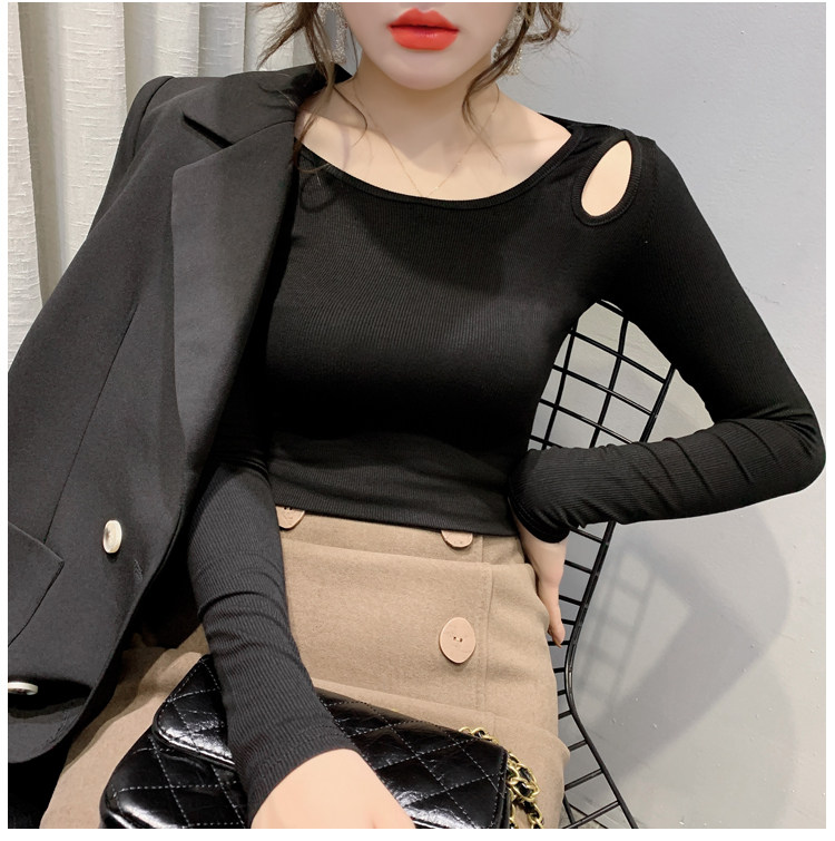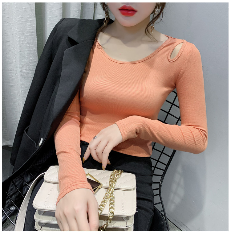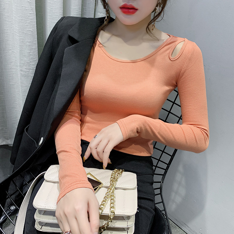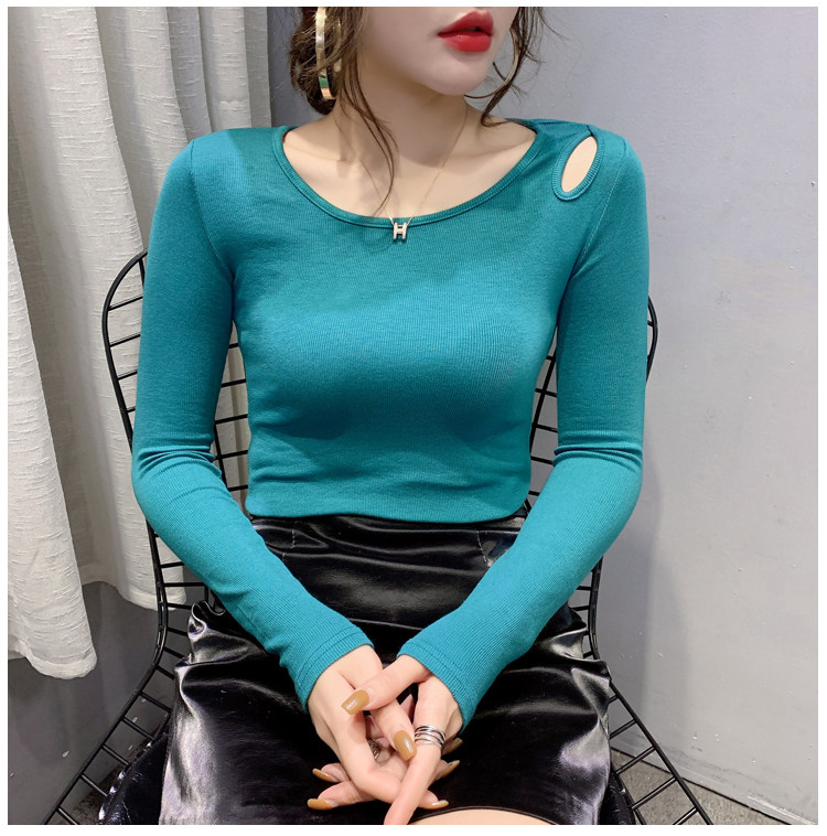Осенняя дизайнерская футболка, базовый приятный телу лонгслив, тренд сезона, в западном стиле