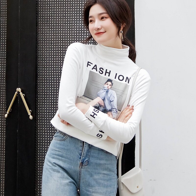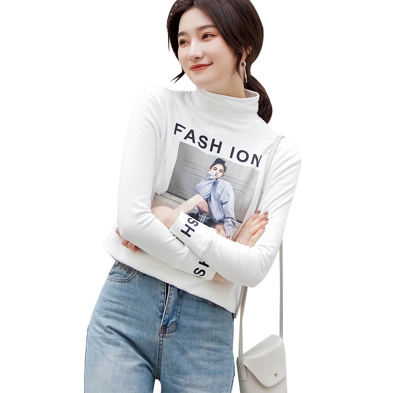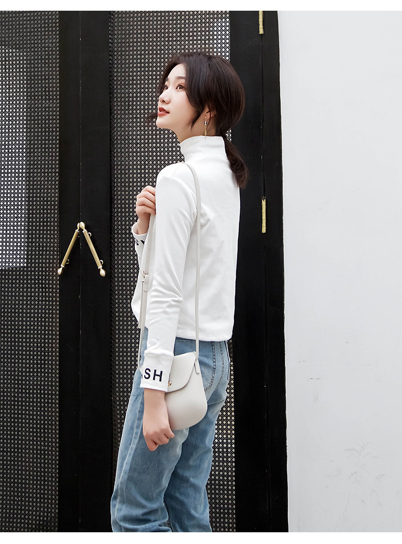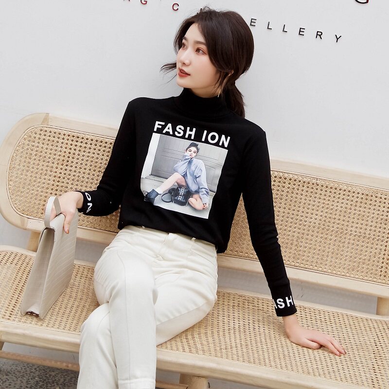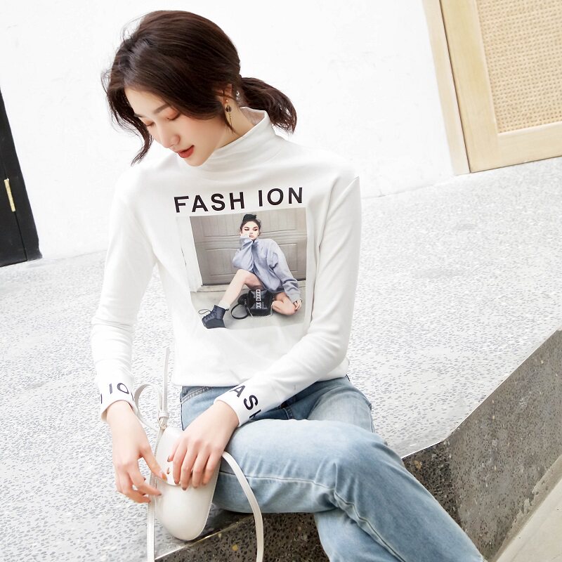Футболка, осенний базовый приятный телу лонгслив для школьников, коллекция 2021, в корейском стиле, в обтяжку, высокий воротник, в западном стиле