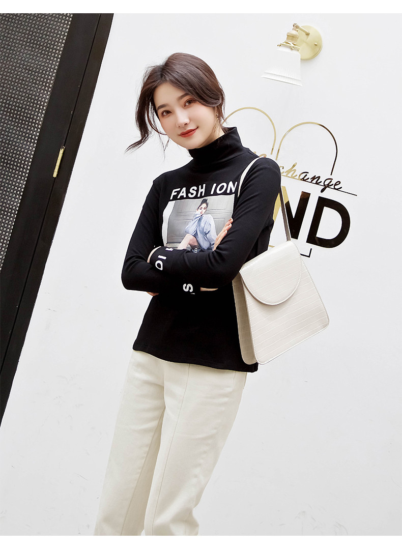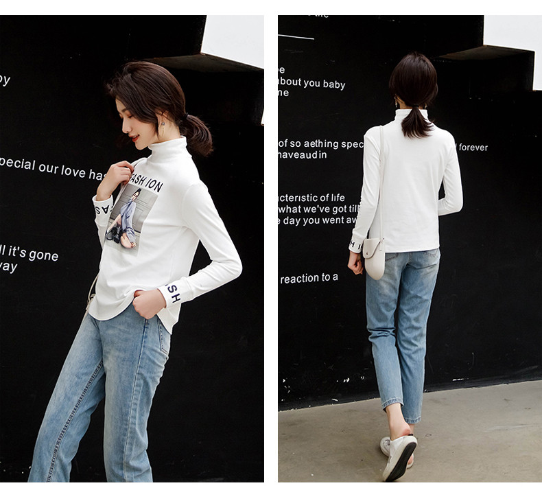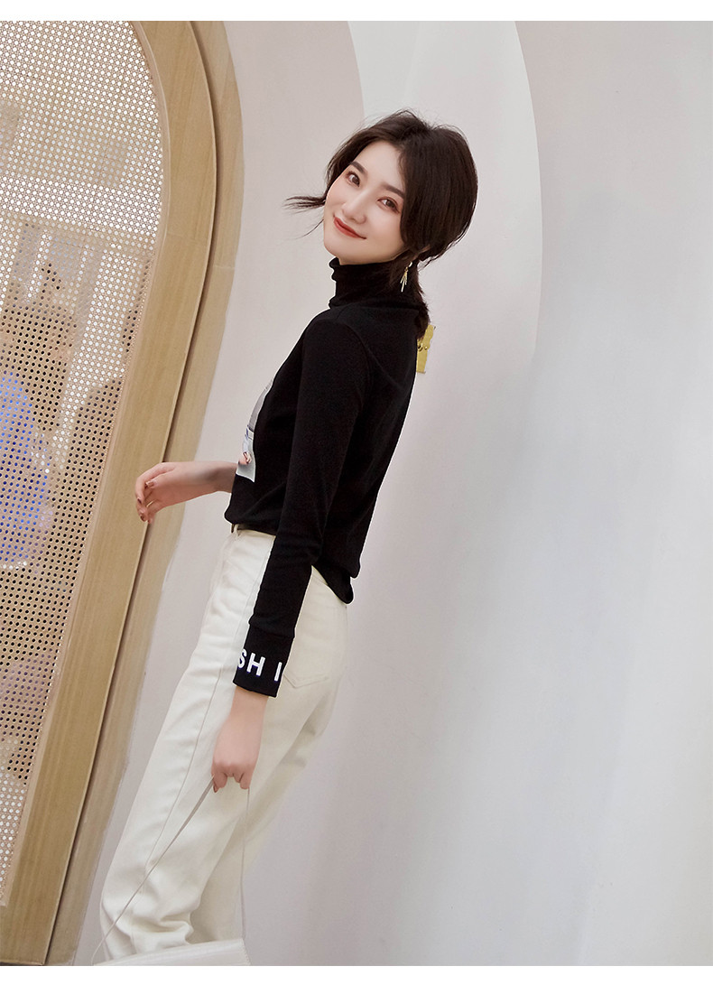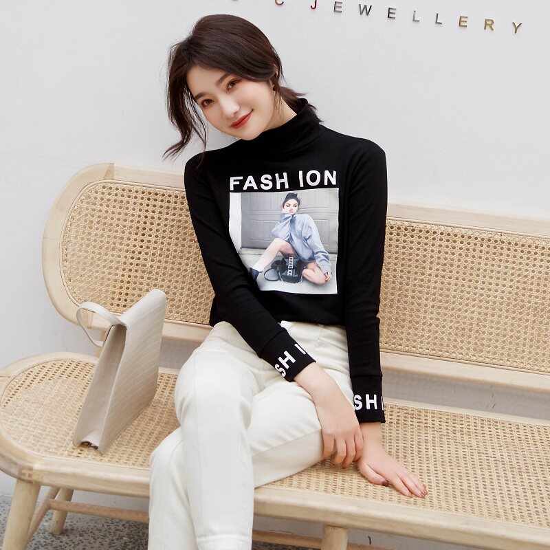 Футболка, осенний базовый приятный телу лонгслив для школьников, коллекция 2021, в корейском стиле, в обтяжку, высокий воротник, в западном стиле