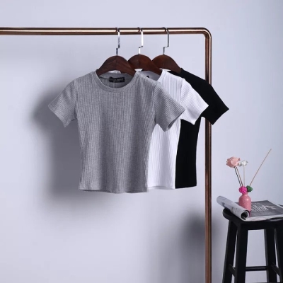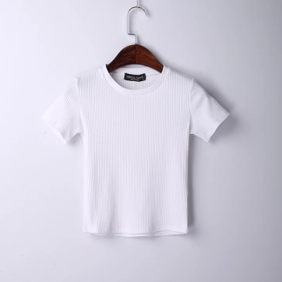 Эластичная базовая короткая футболка с коротким рукавом, облегающий крой, в корейском стиле