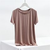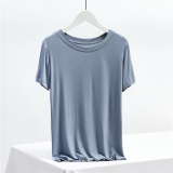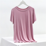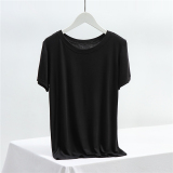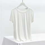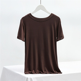 Однотонная летняя тонкая базовая приятная телу футболка с круглым воротником, большой размер, облегающий крой, по фигуре