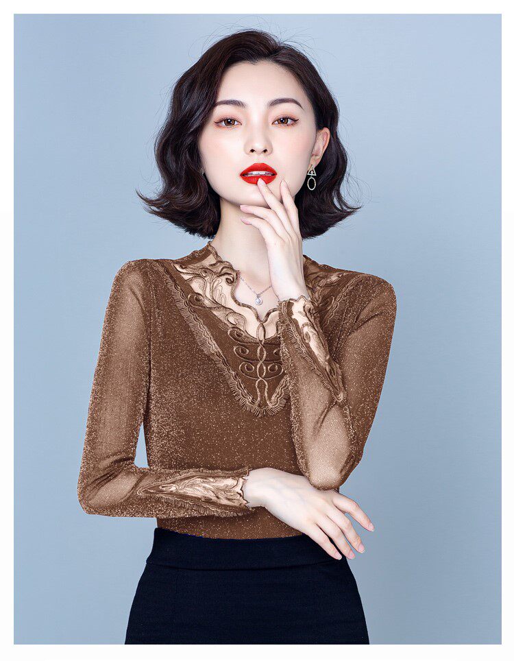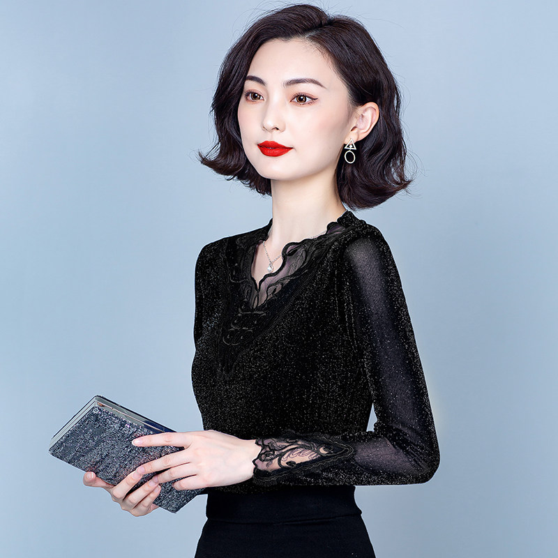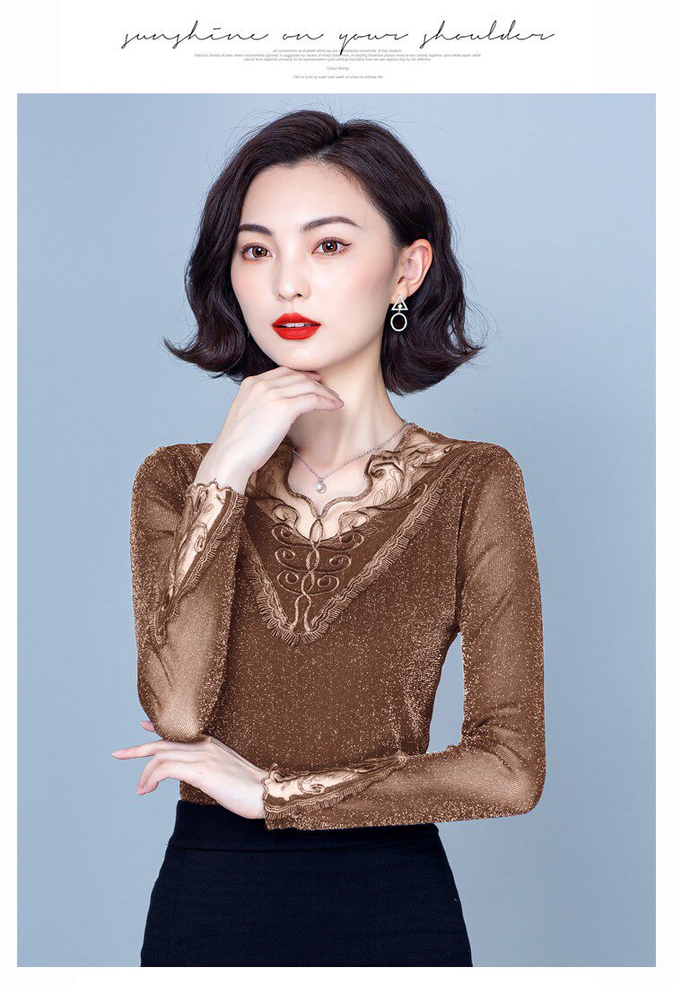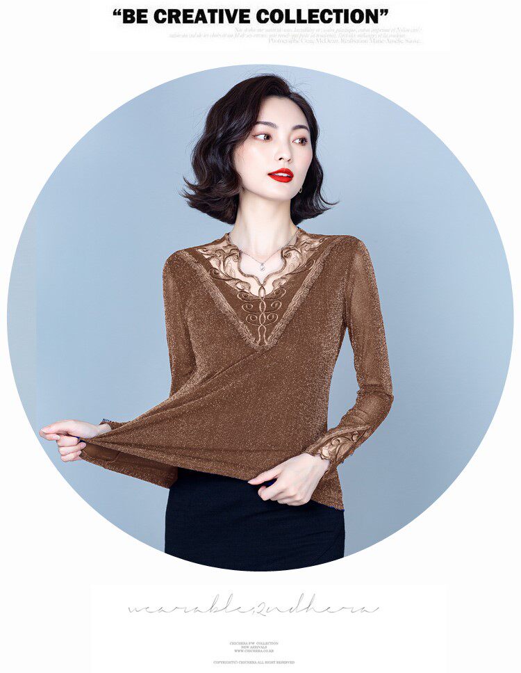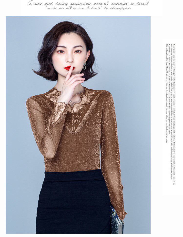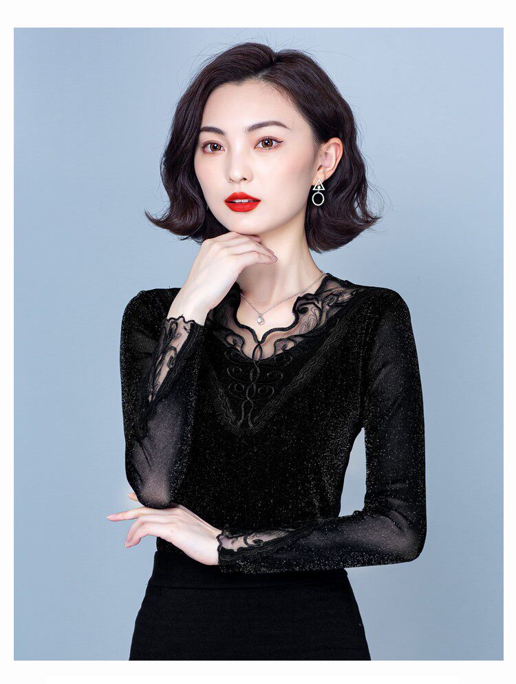 Утепленный кружевной шелковый приятный телу демисезонный модный лонгслив, в западном стиле