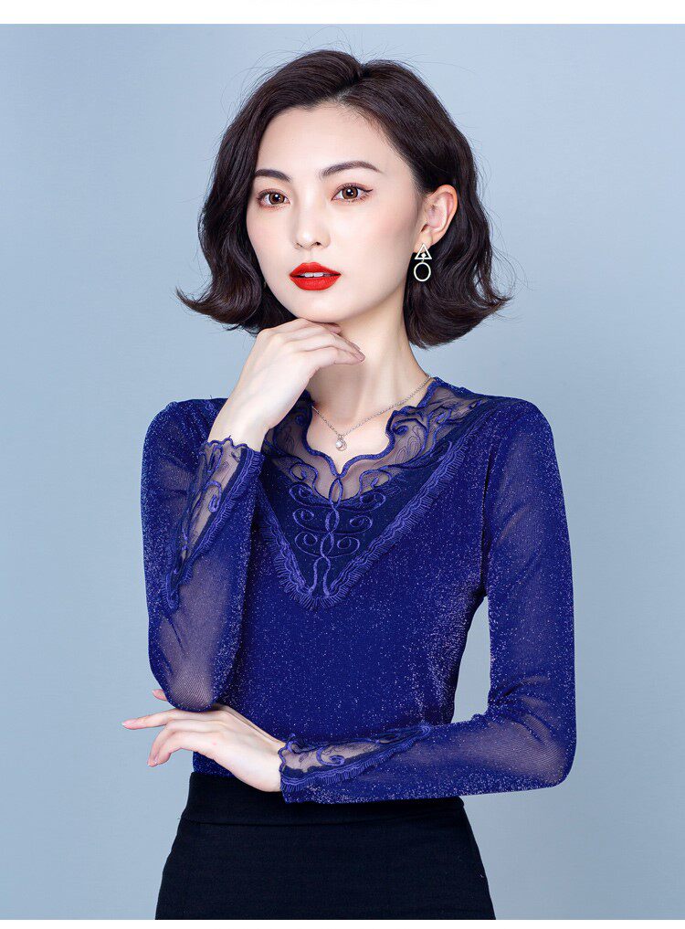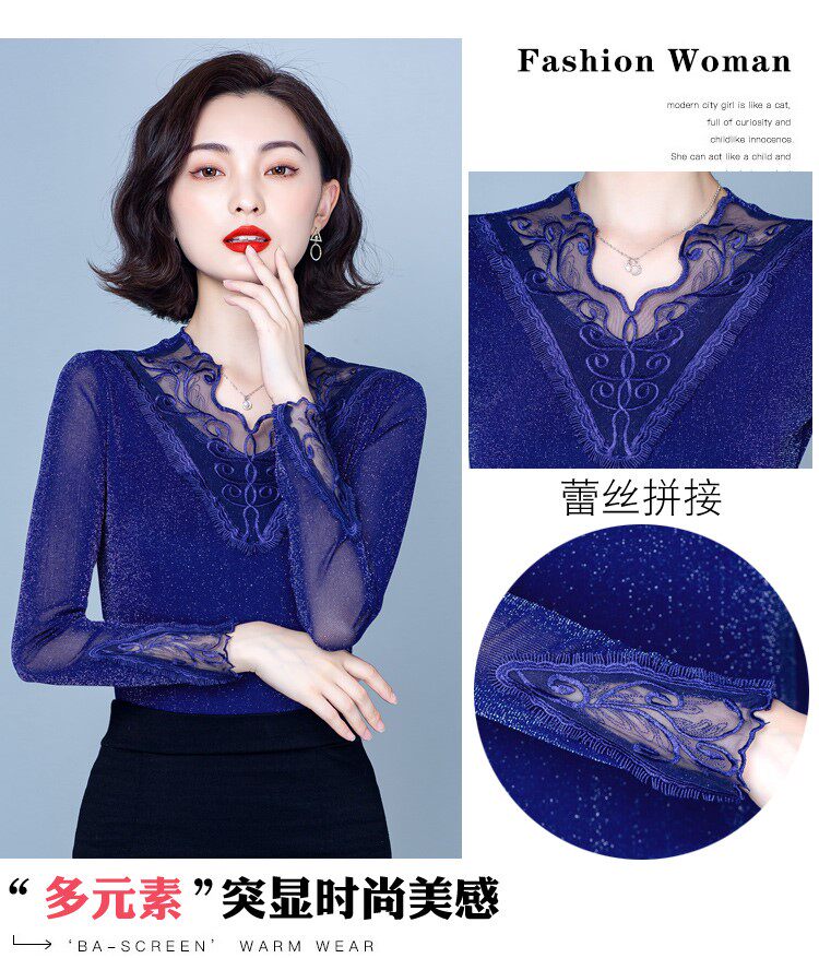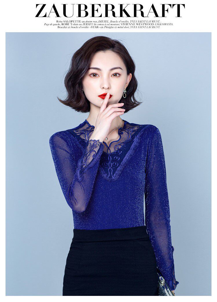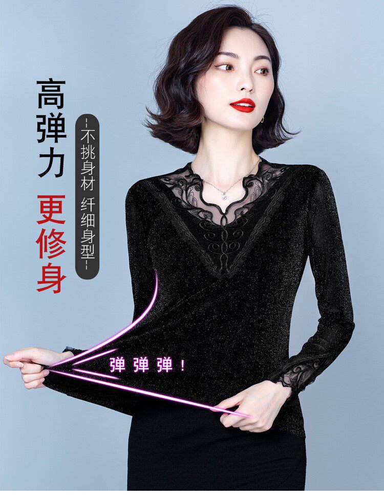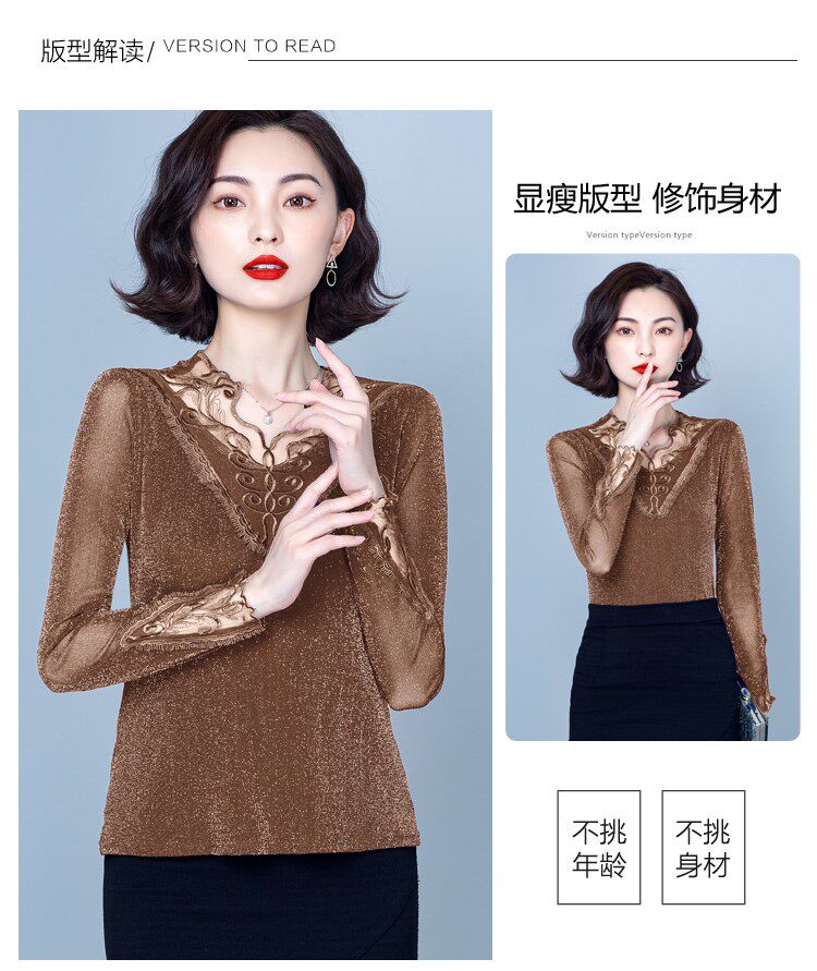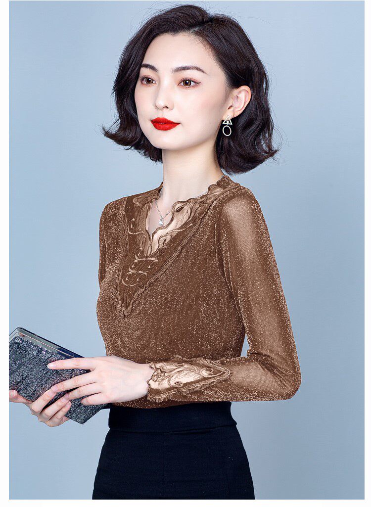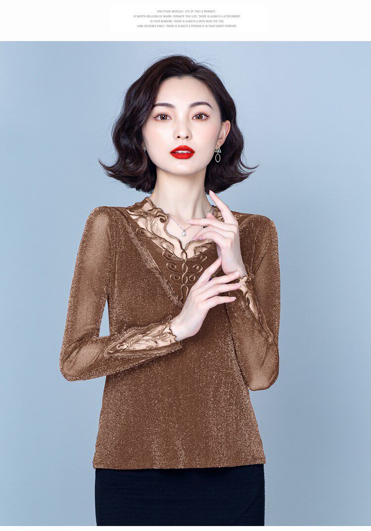 Утепленный кружевной шелковый приятный телу демисезонный модный лонгслив, в западном стиле