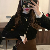 Ретро бархатный приталенный лонгслив, базовая приятная телу футболка, осенний, 2020, высокий воротник