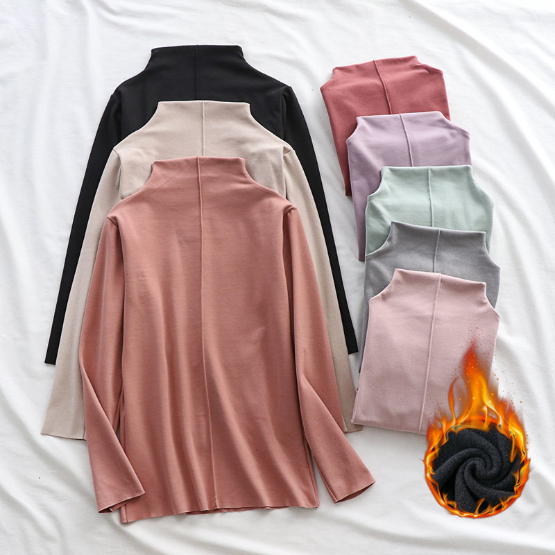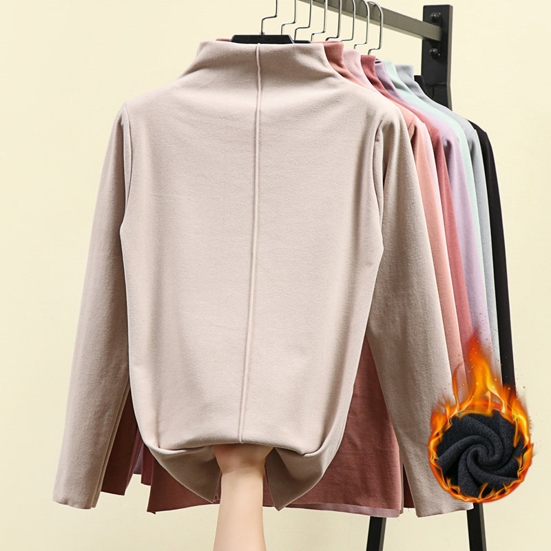 Бархатный демисезонный лонгслив, двусторонная бархатная футболка, высокий воротник, увеличенная толщина