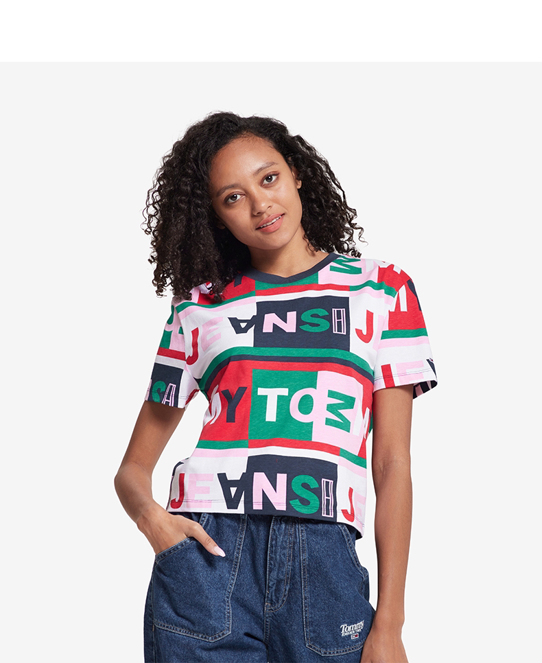 Tommy Jeans Женская творческая геометрическая строчка с коротки