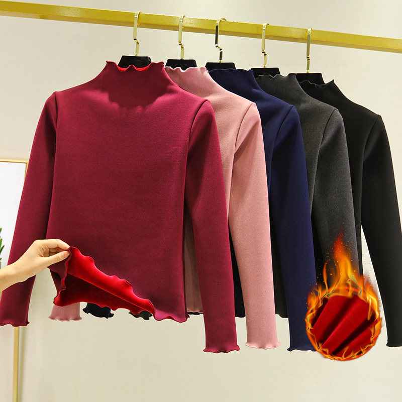 Зимняя утепленная футболка, базовый приятный телу лонгслив, термобелье, 2020, увеличенная толщина, высокий воротник