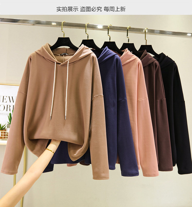 Демисезонный двусторонний бархатный лонгслив, толстовка с капюшоном, в корейском стиле, увеличенная толщина