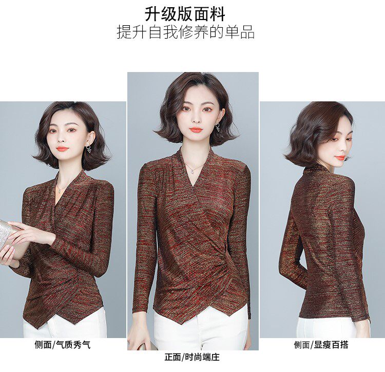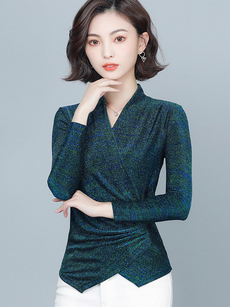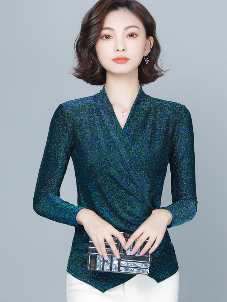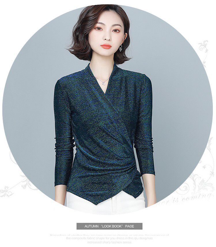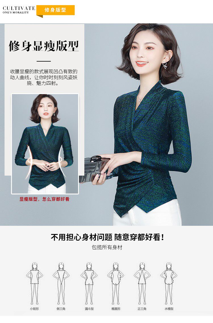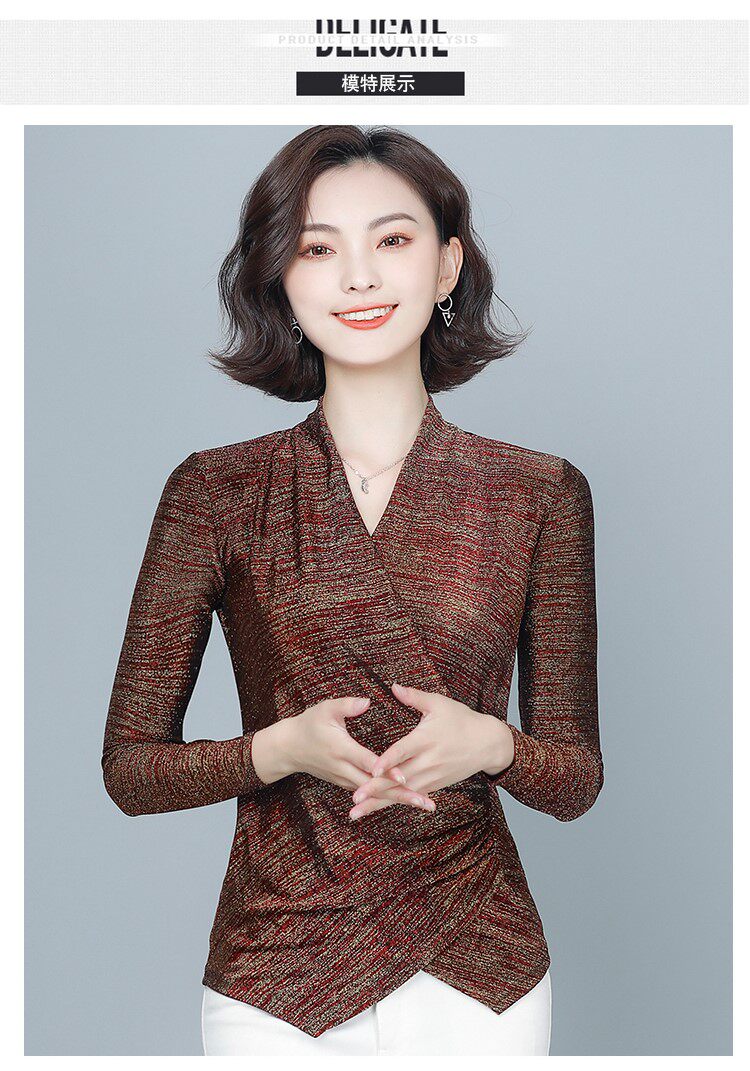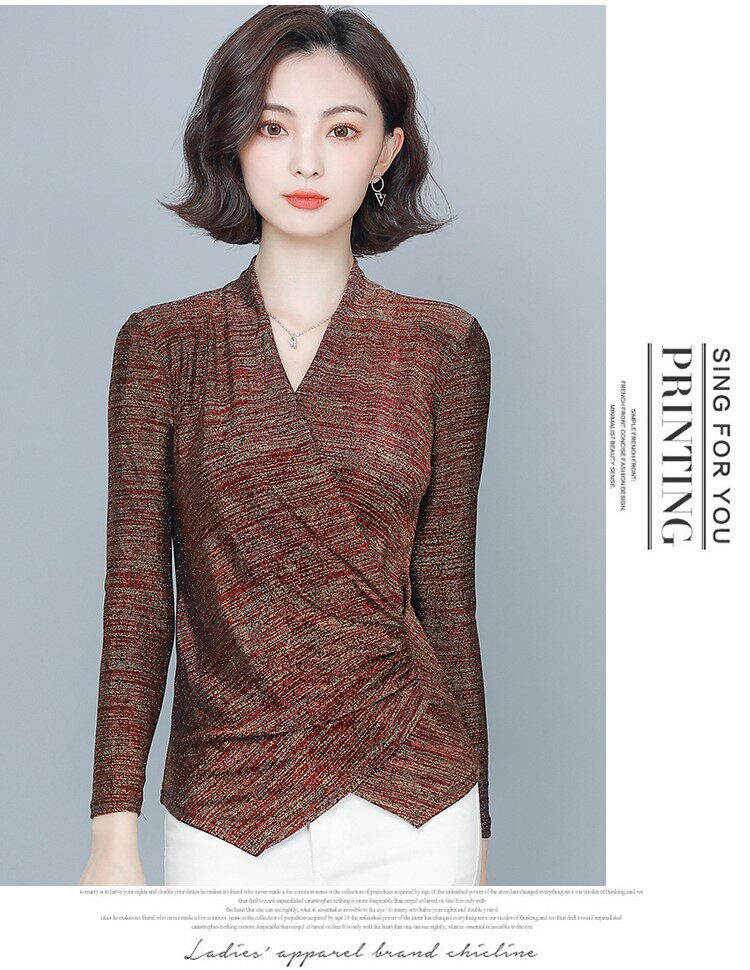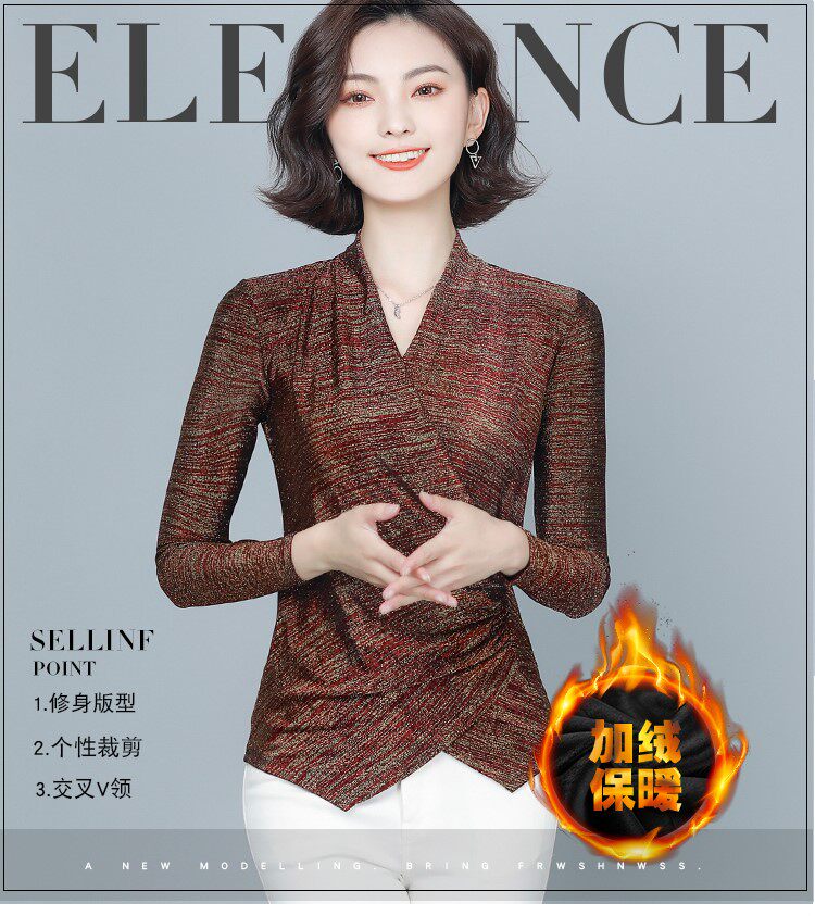 Флисовый шелковый приятный телу демисезонный приталенный лонгслив, в западном стиле, V-образный вырез