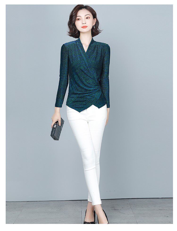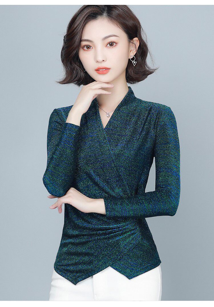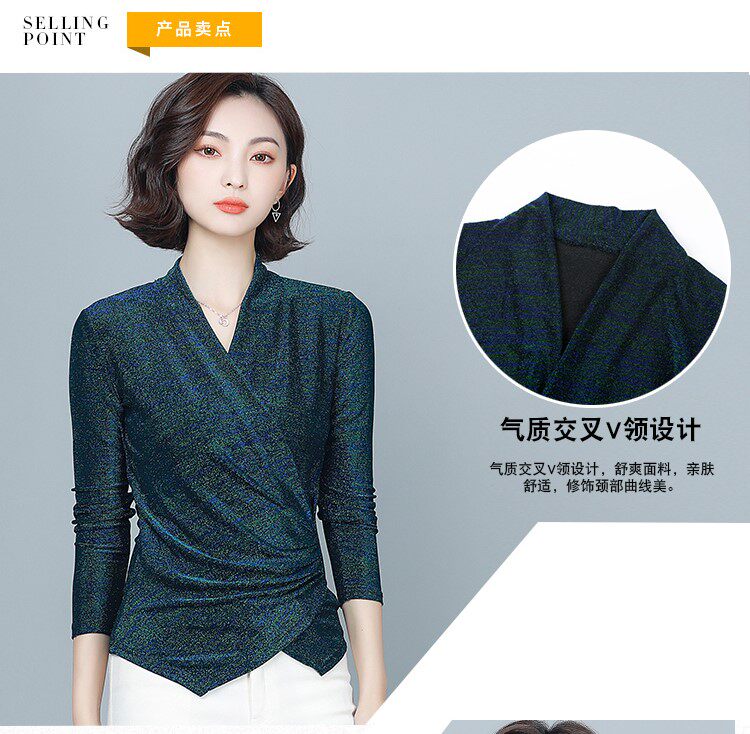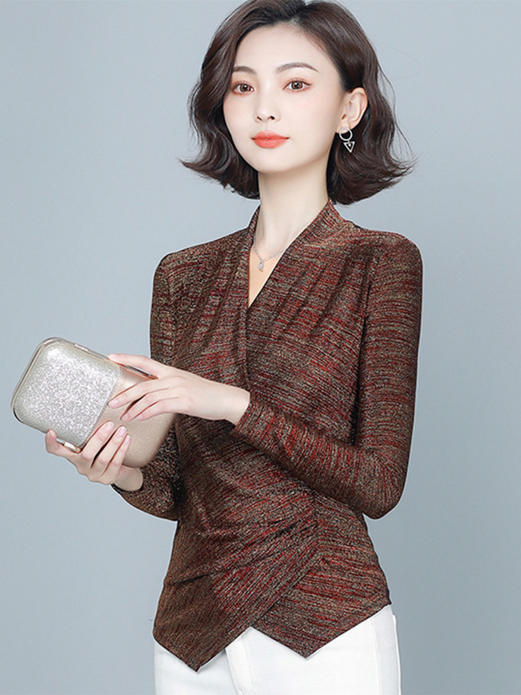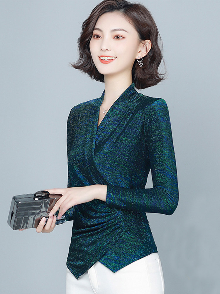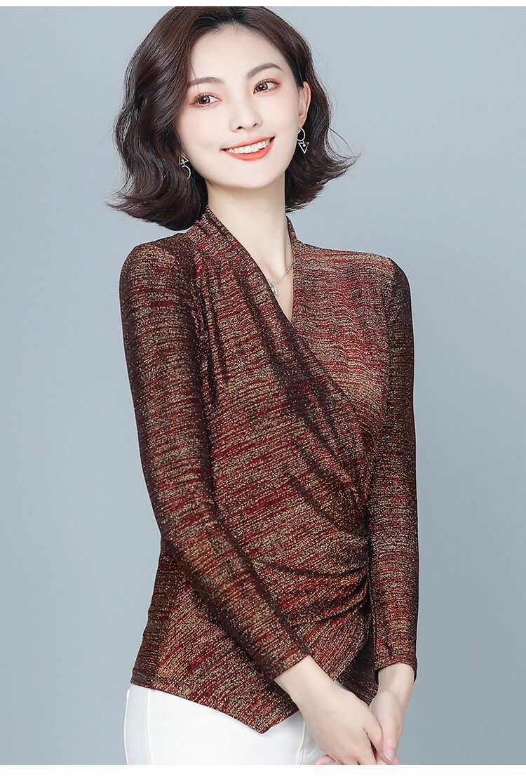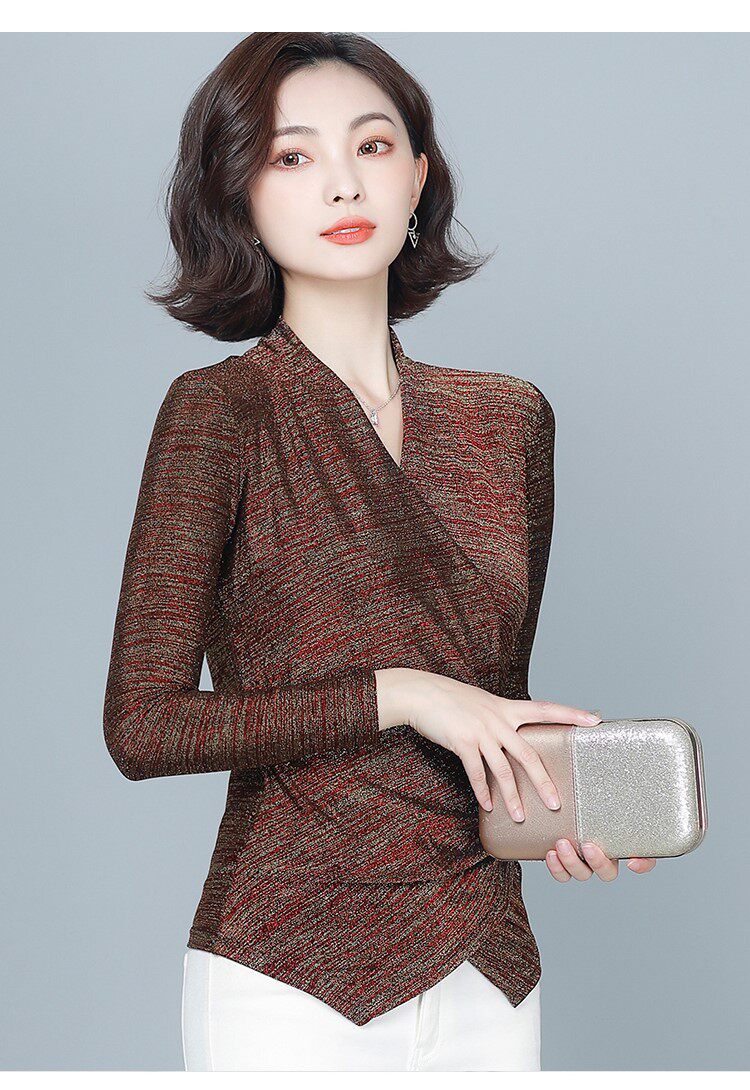 Флисовый шелковый приятный телу демисезонный приталенный лонгслив, в западном стиле, V-образный вырез