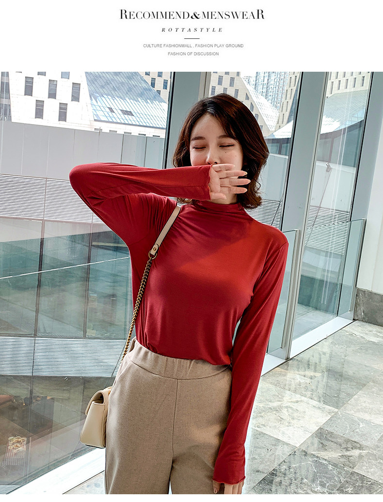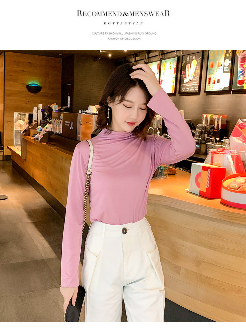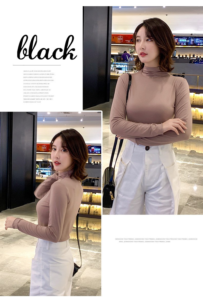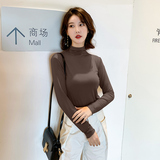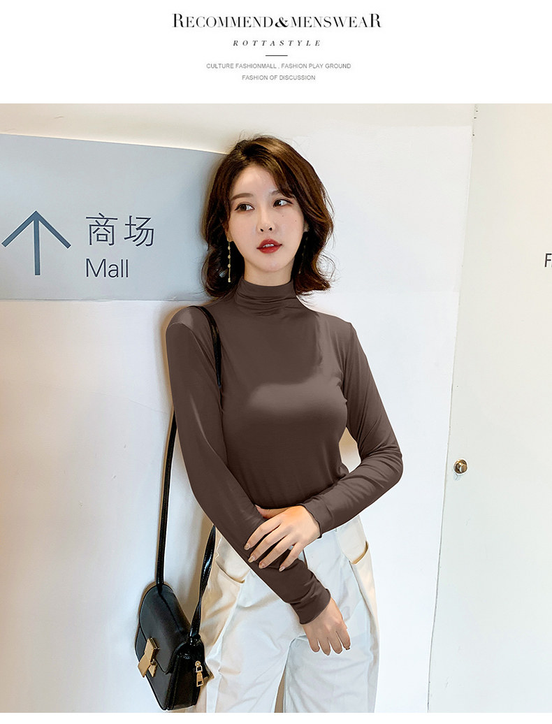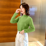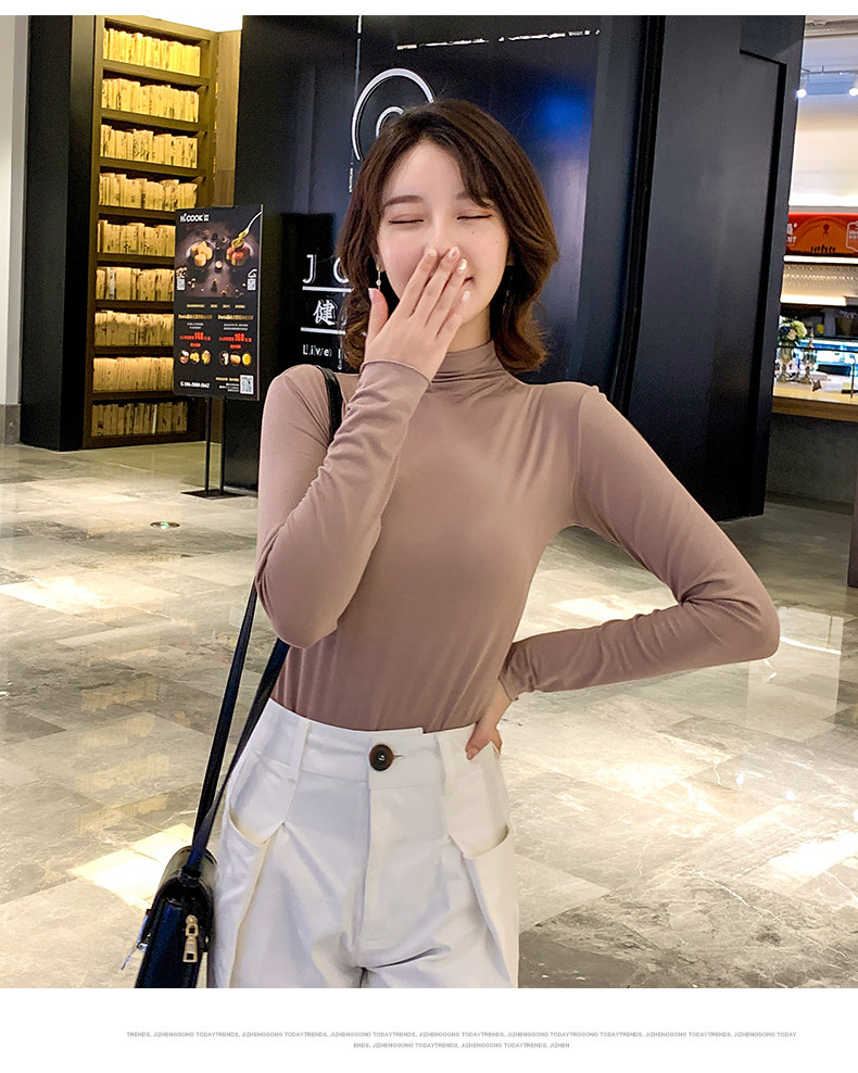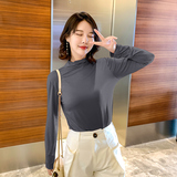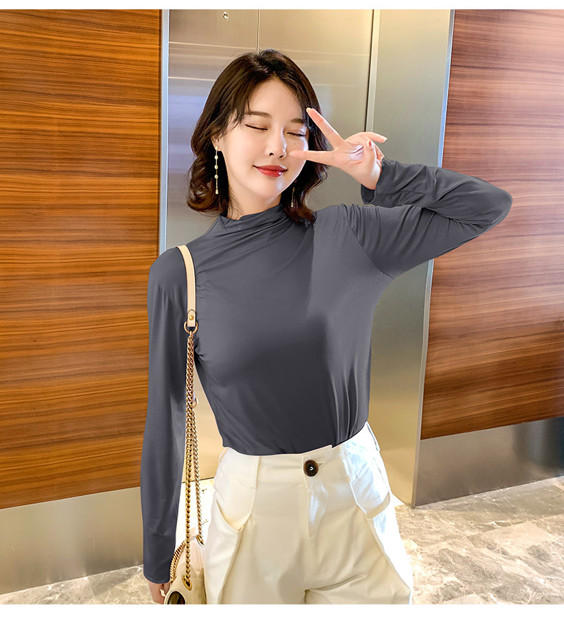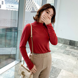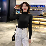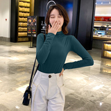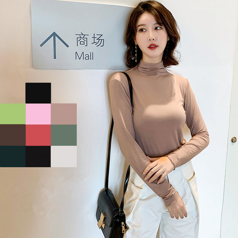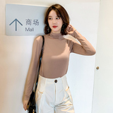 Осенний базовый лонгслив, приятная телу тонкая футболка, 2023, высокий воротник, по фигуре
