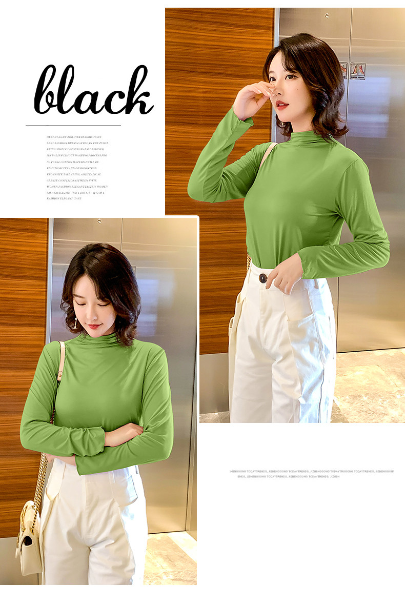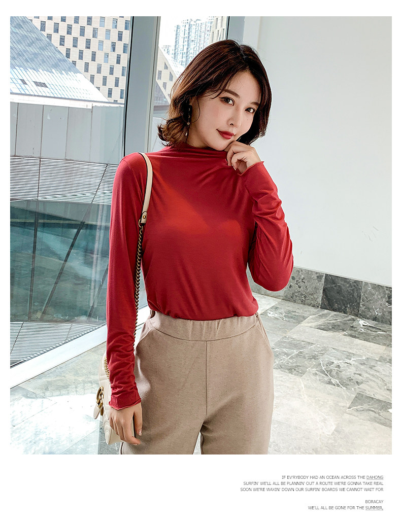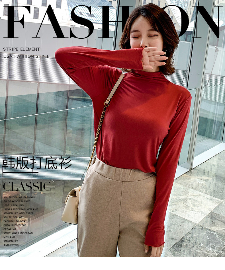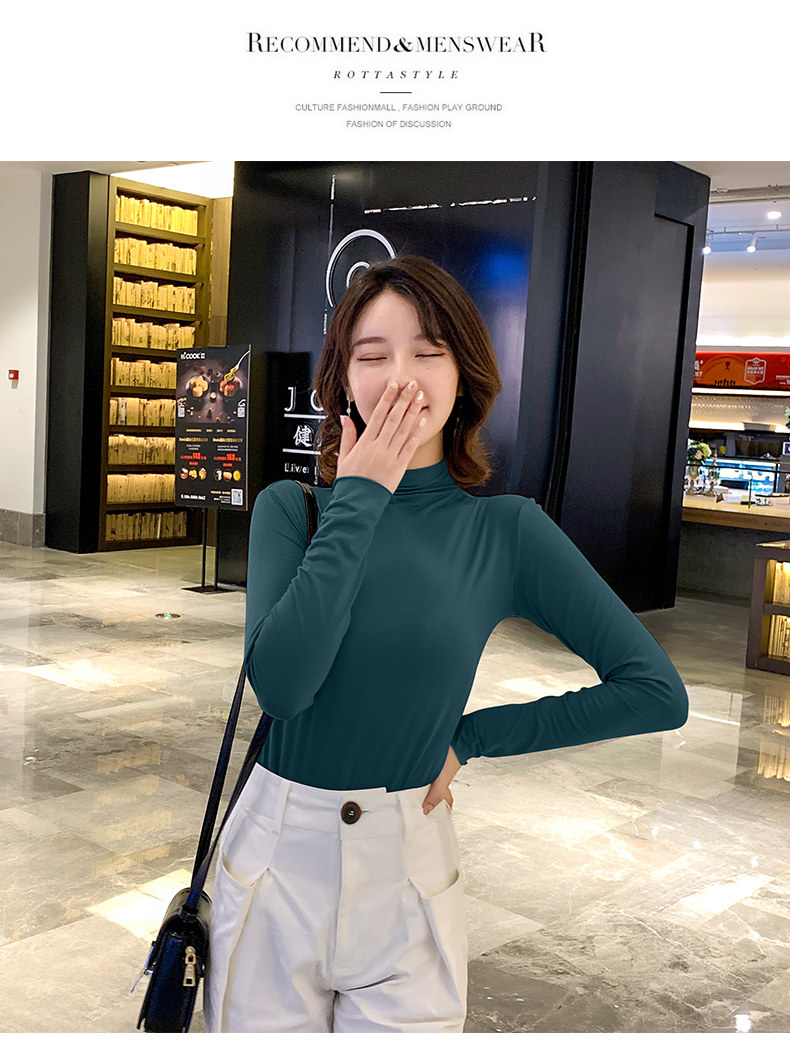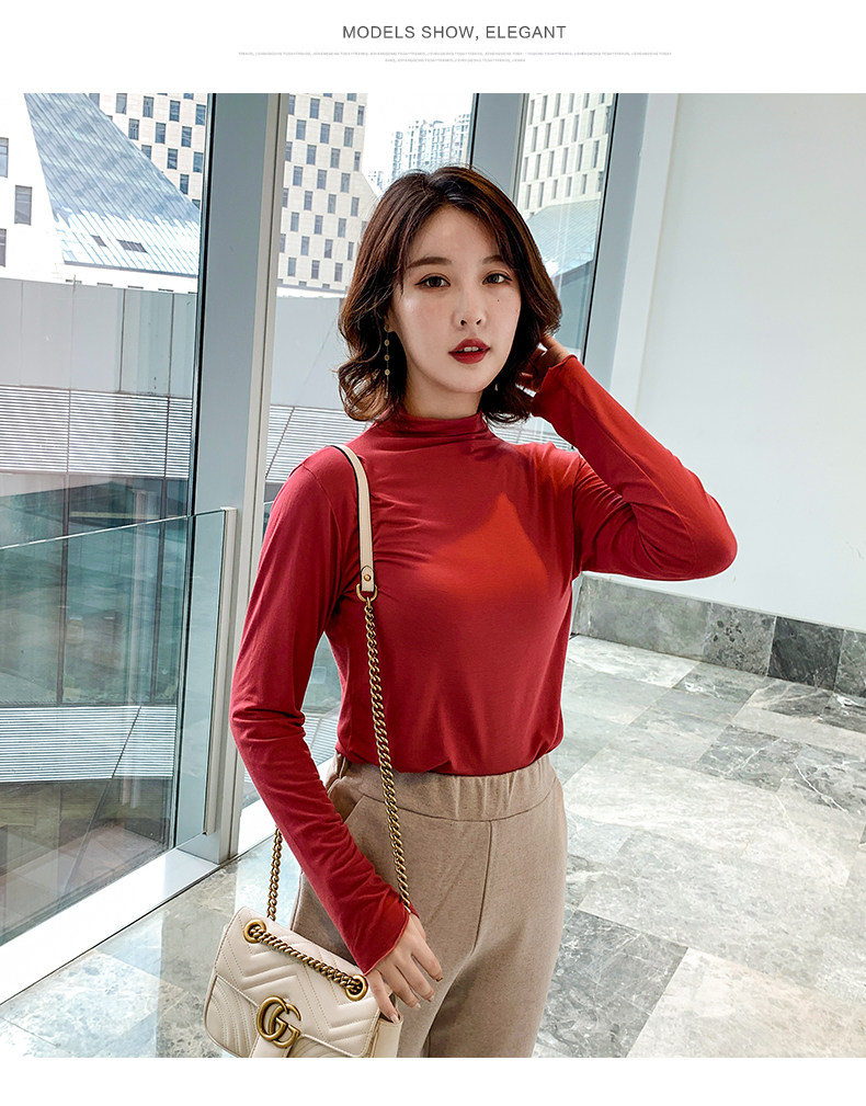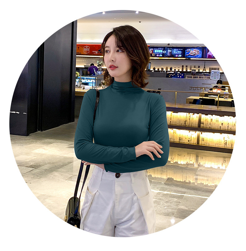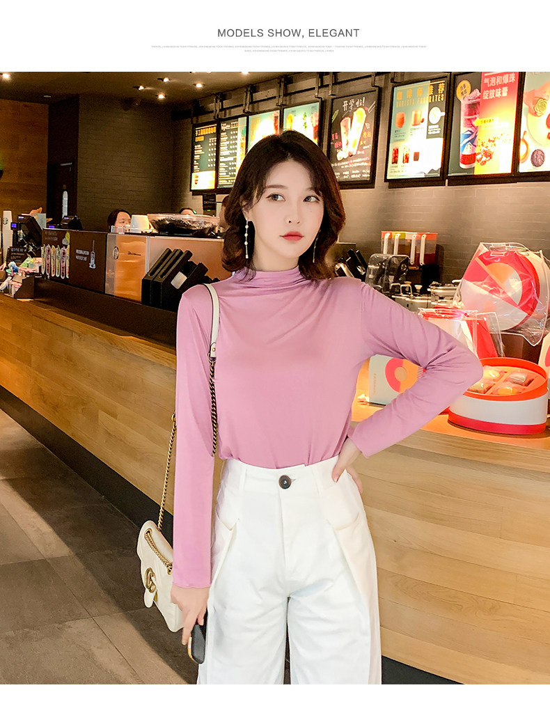Осенний базовый лонгслив, приятная телу тонкая футболка, 2023, высокий воротник, по фигуре