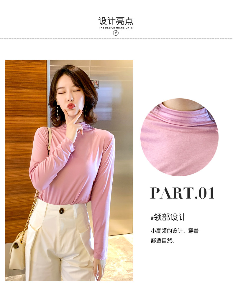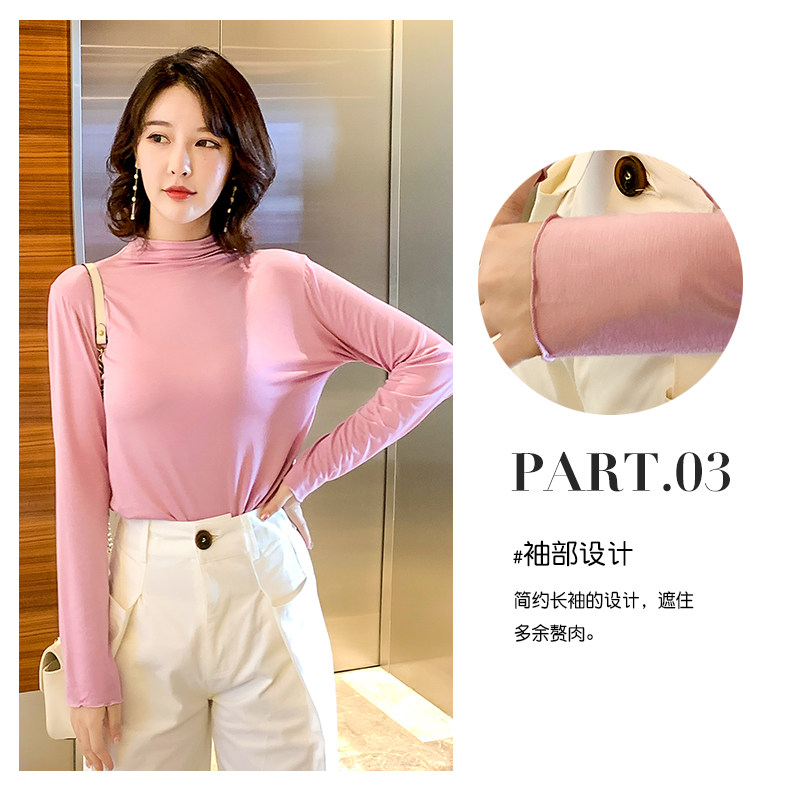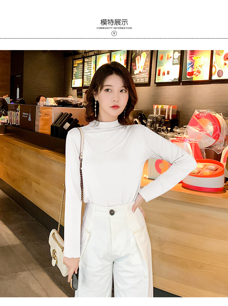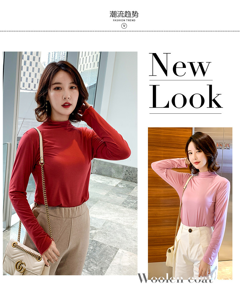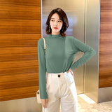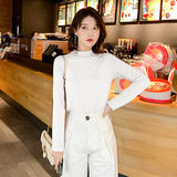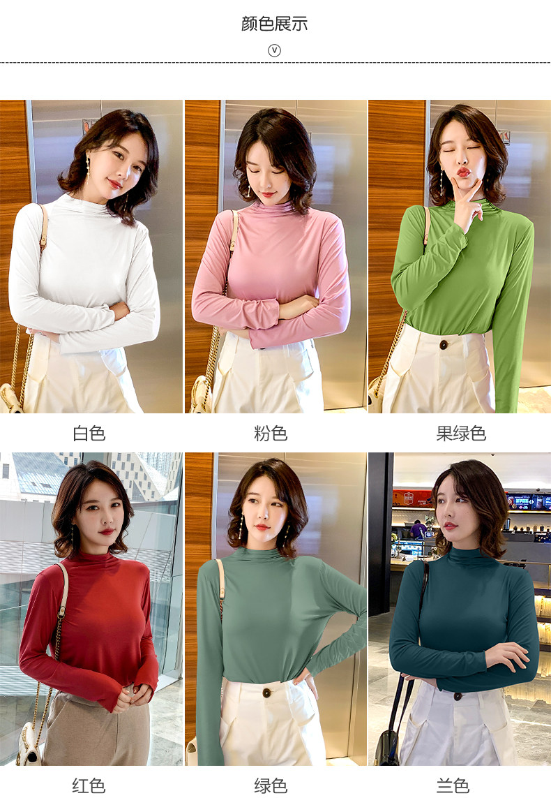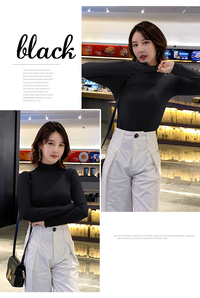 Осенний базовый лонгслив, приятная телу тонкая футболка, 2023, высокий воротник, по фигуре