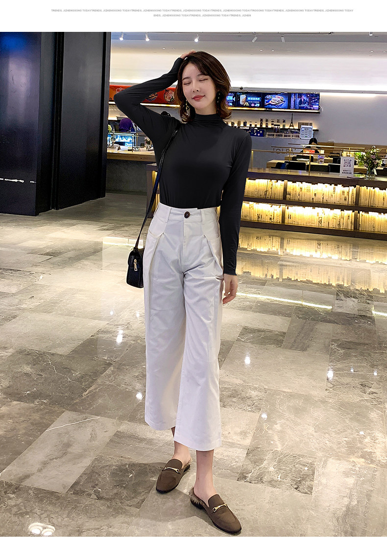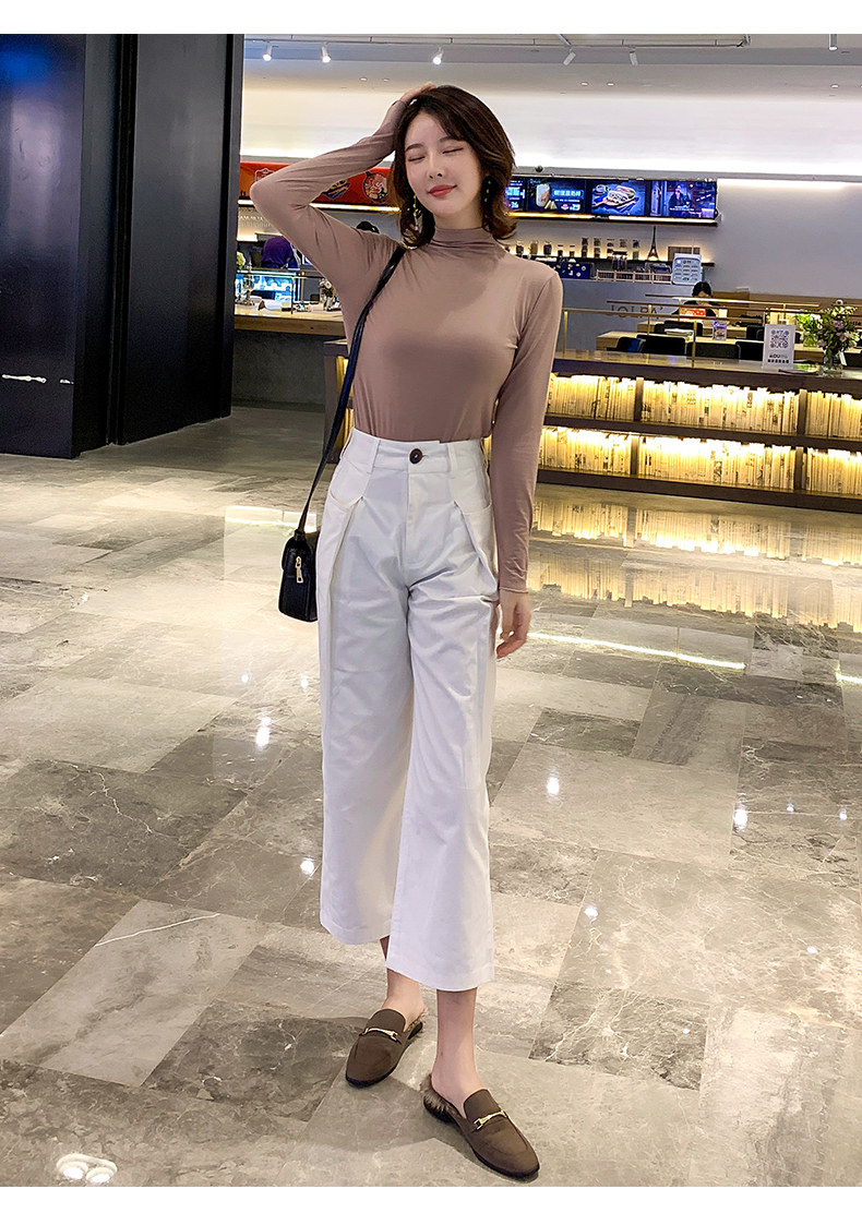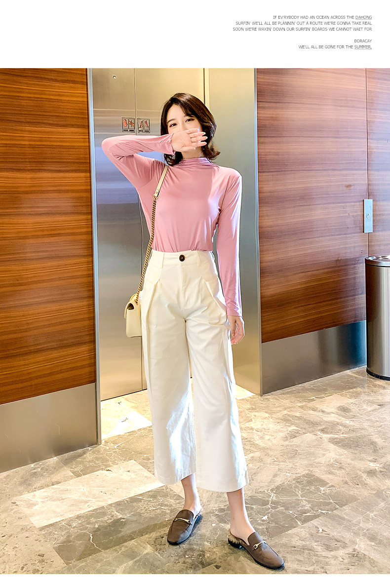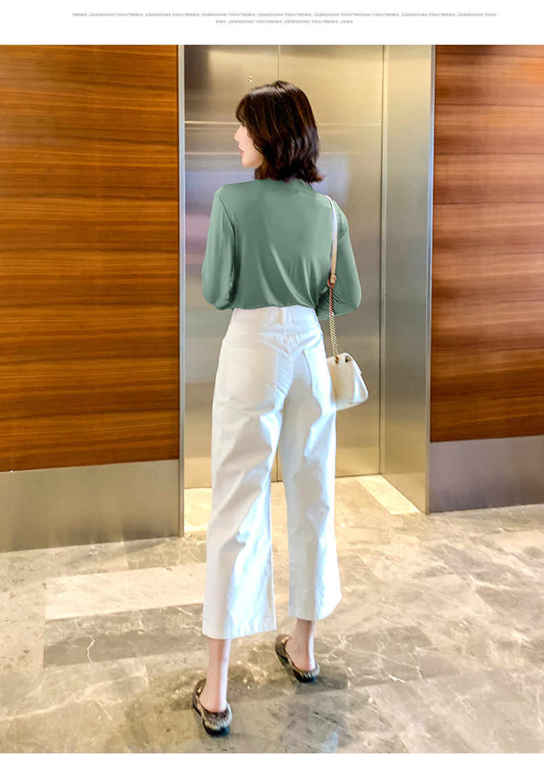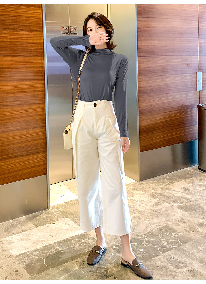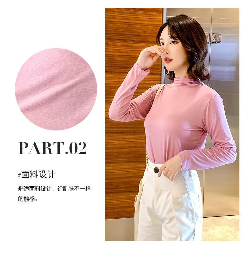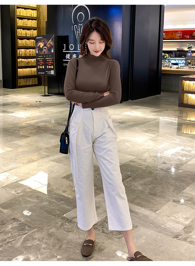 Осенний базовый лонгслив, приятная телу тонкая футболка, 2023, высокий воротник, по фигуре