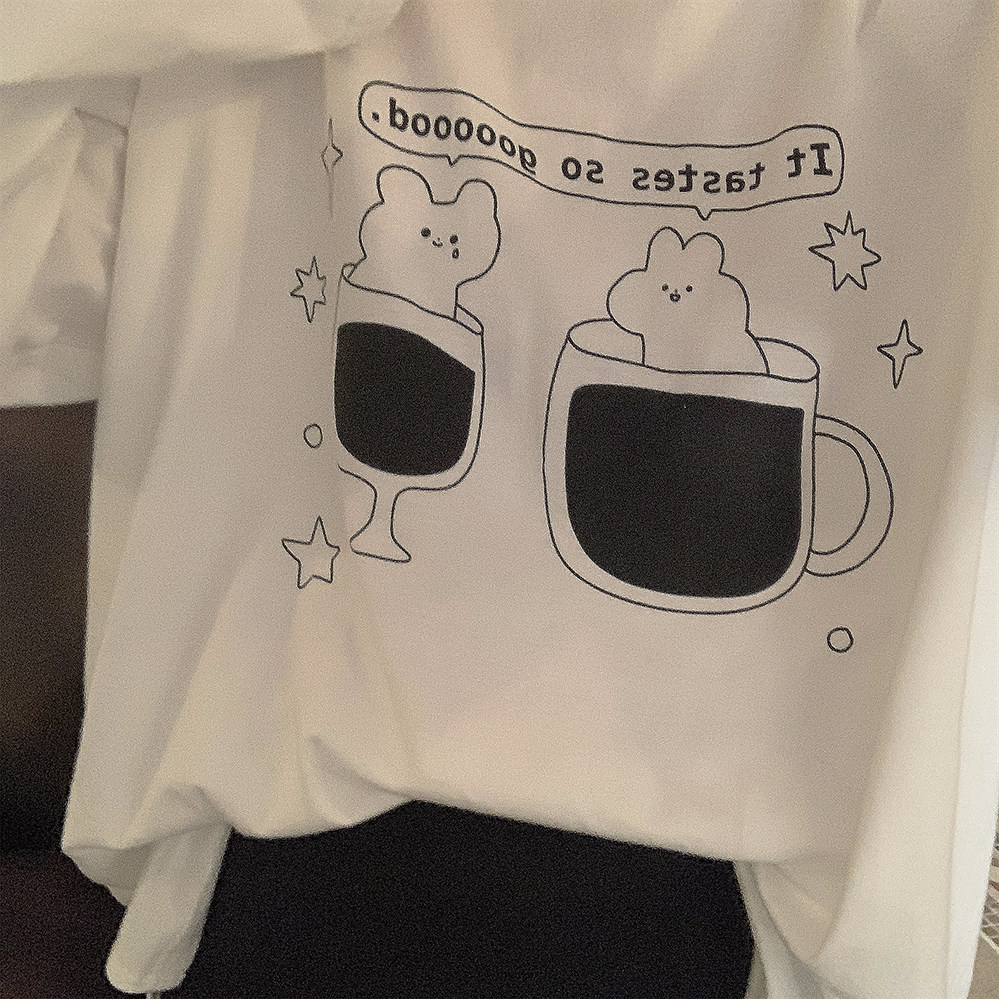 Оригинальный бокал, хлопковый кролик, универсальный белый лонгслив, английский, свободный крой