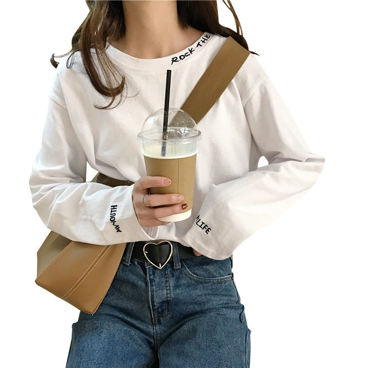 Футболка, брендовый белый базовый приятный телу лонгслив для школьников, коллекция 2022, популярно в интернете, в корейском стиле, свободный крой