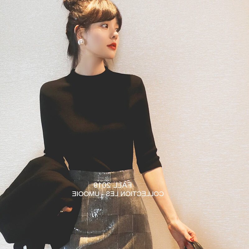 Базовая приятная телу осенняя тонкая бархатная футболка, высокий воротник, в западном стиле