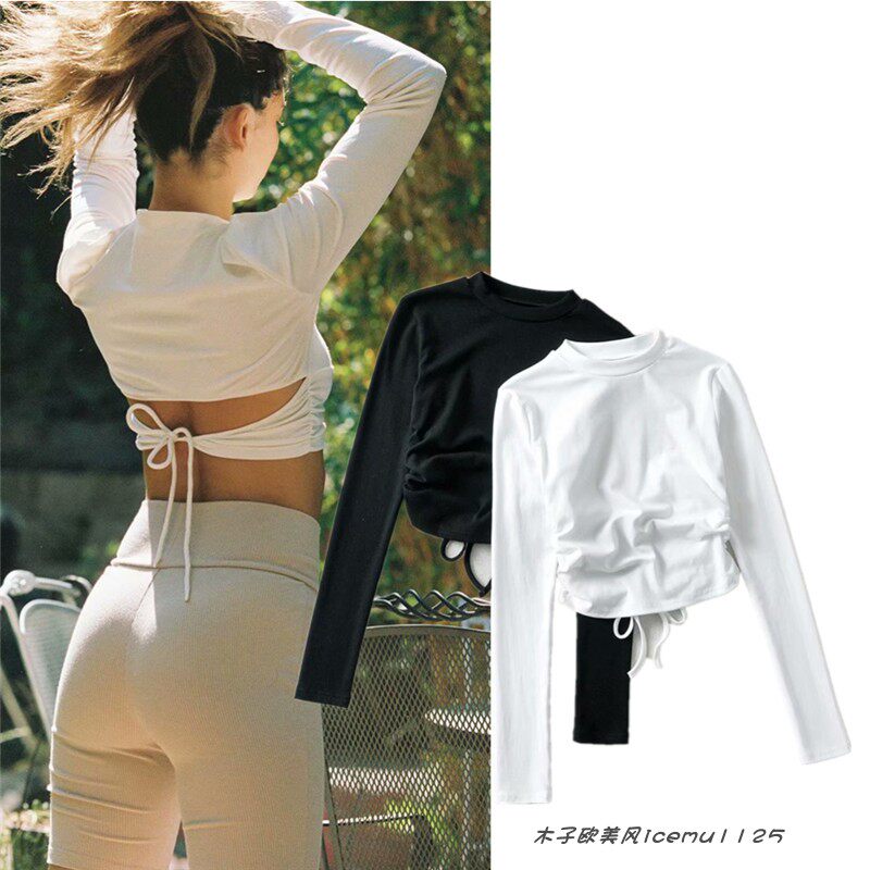 Короткий сексуальный лонгслив, в обтяжку, на шнурках