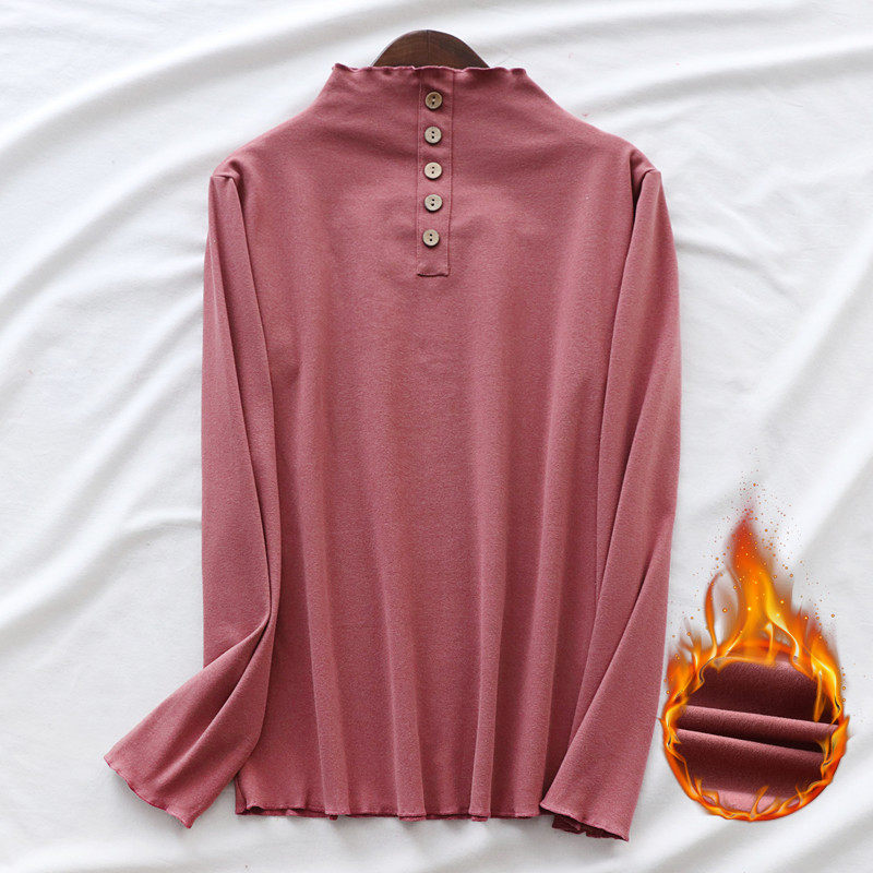 Демисезонный флисовый бархатный базовый приятный телу двусторонний хлопковый лонгслив, высокий воротник, увеличенная толщина