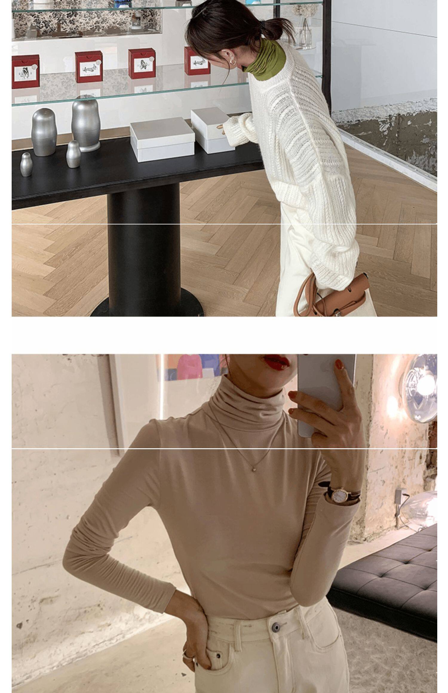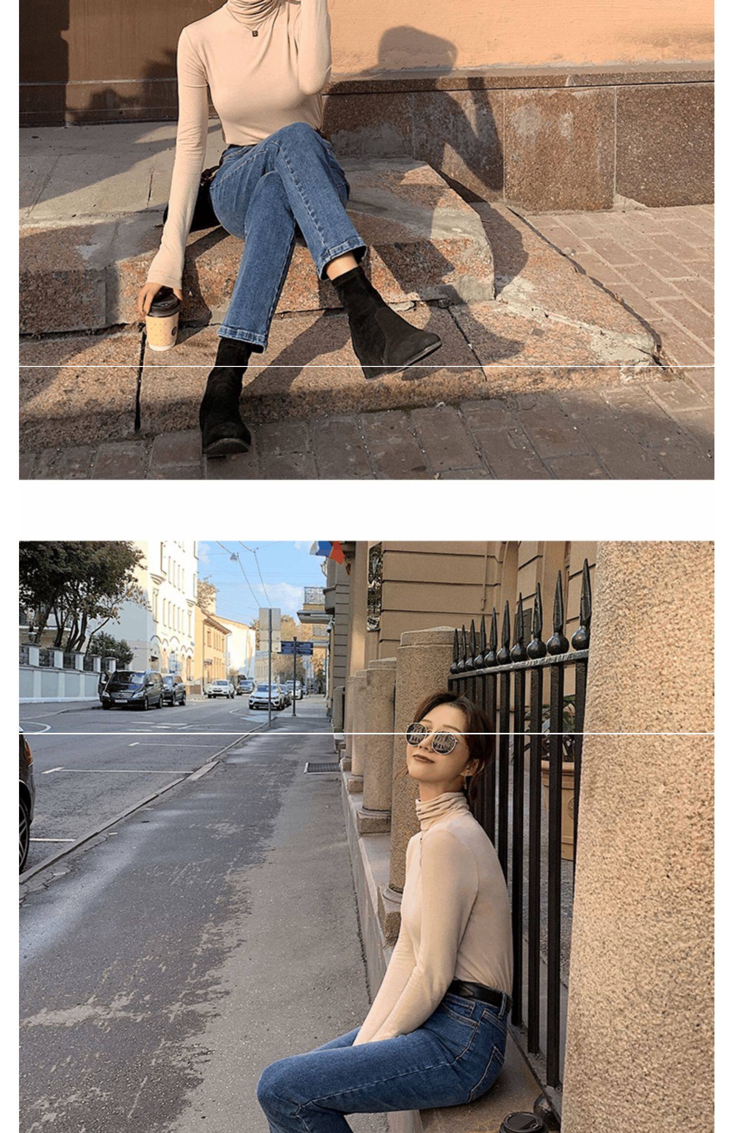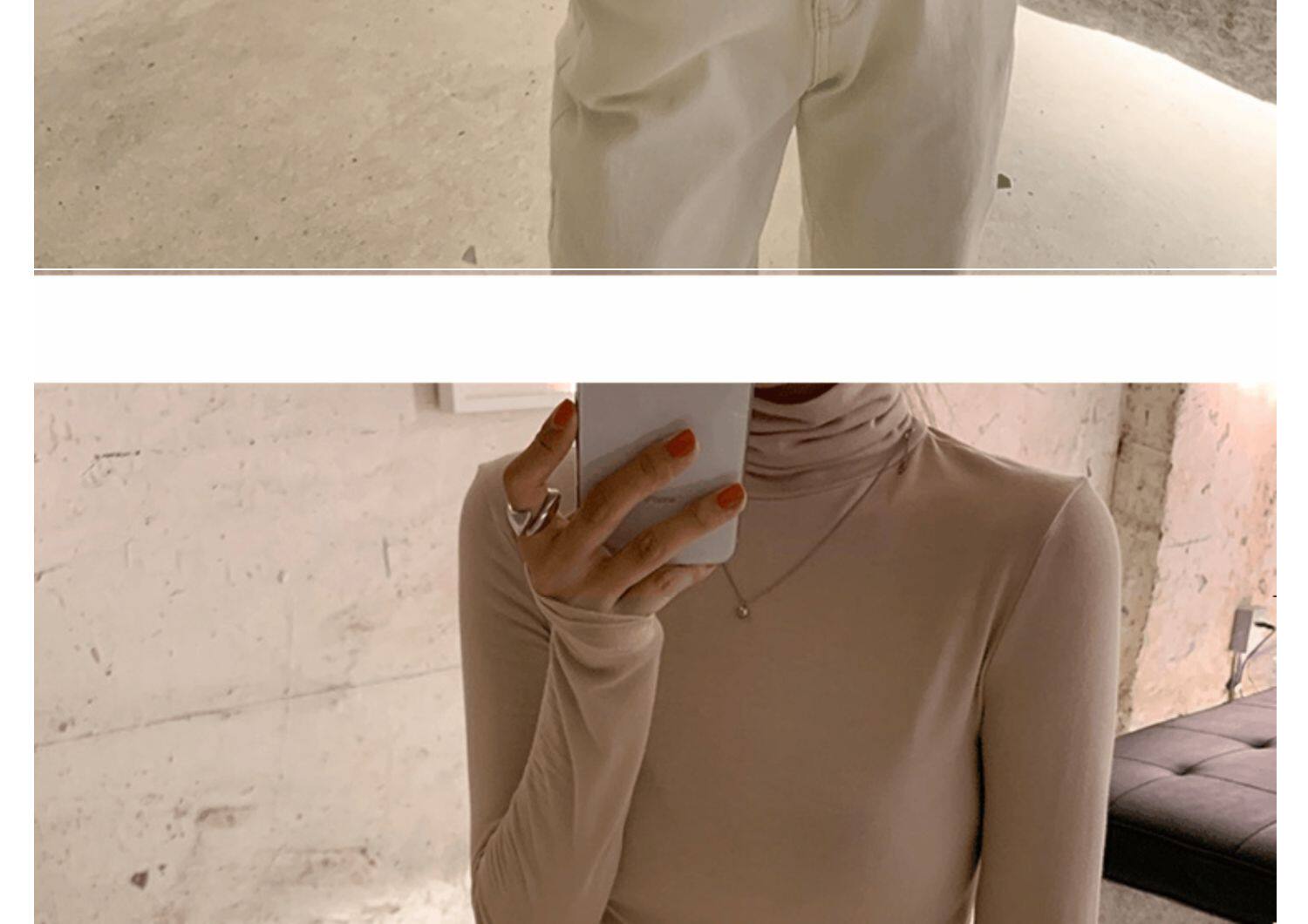 Базовый приятный телу осенний бархатный цветной лонгслив, высокий воротник, в западном стиле