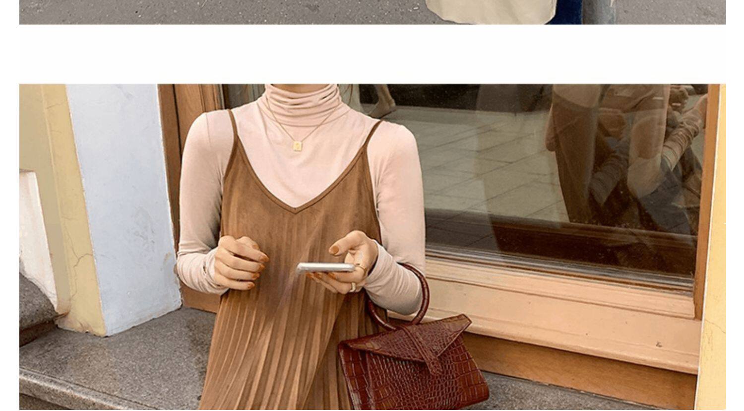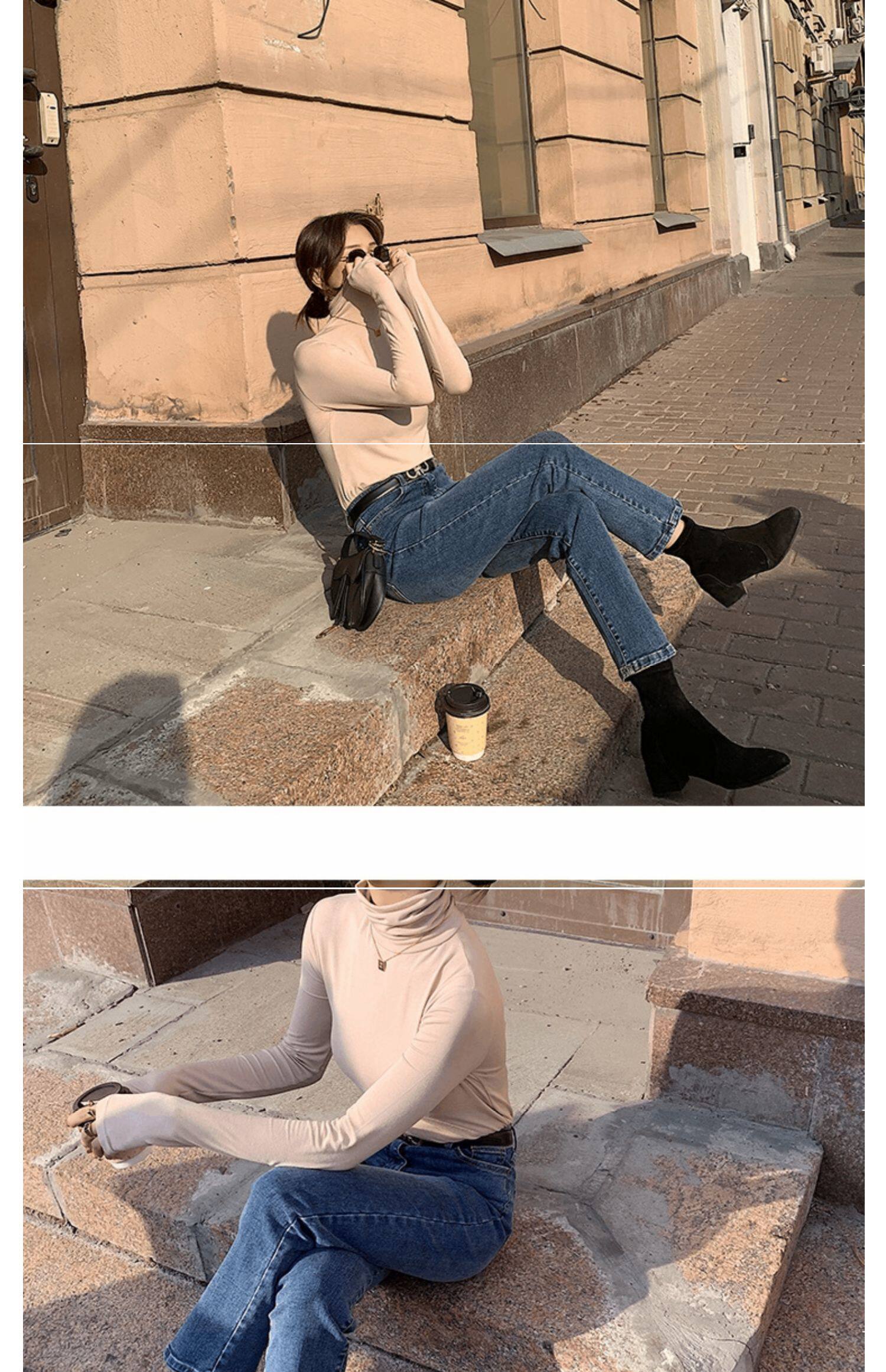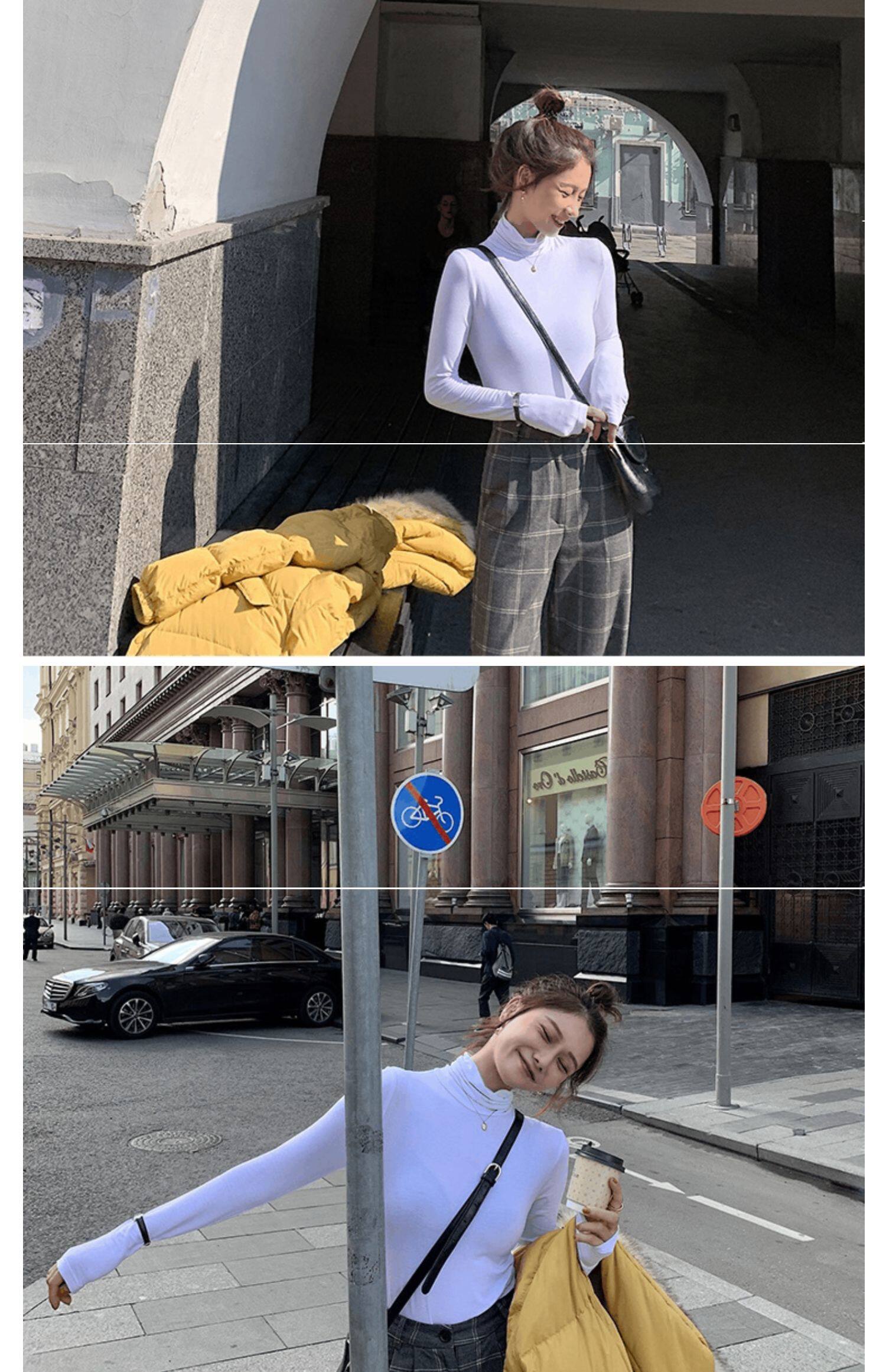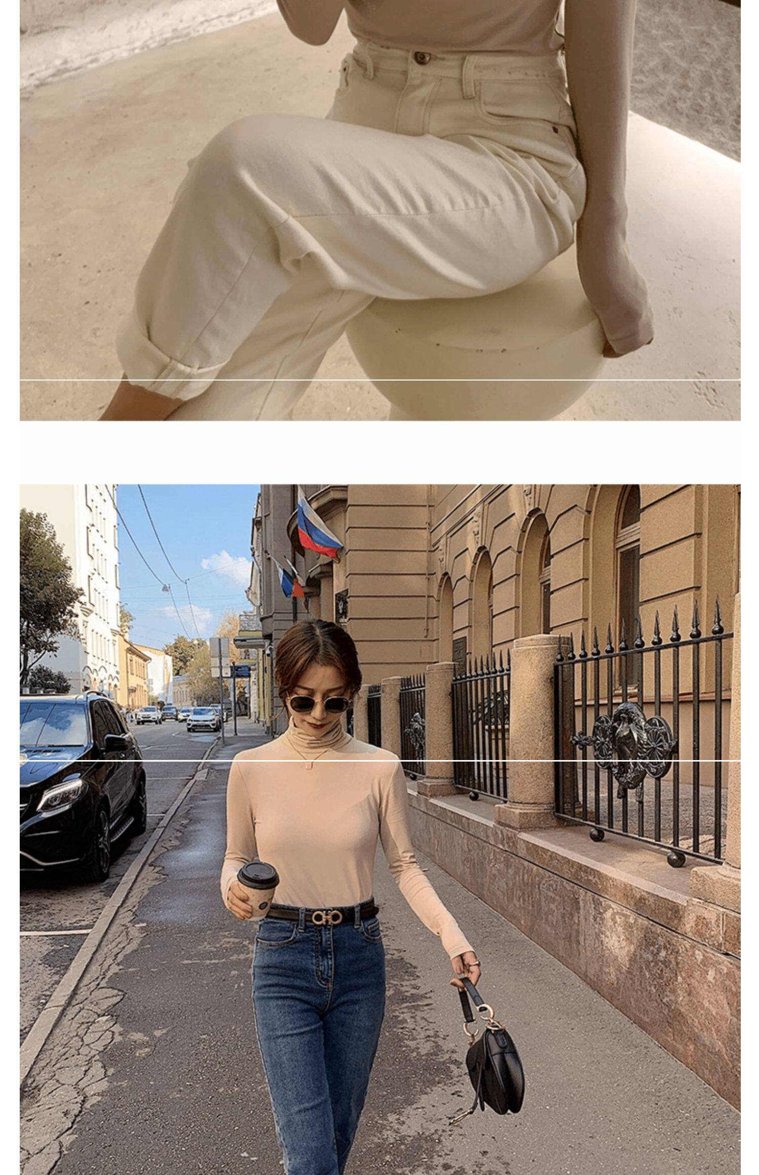 Базовый приятный телу осенний бархатный цветной лонгслив, высокий воротник, в западном стиле