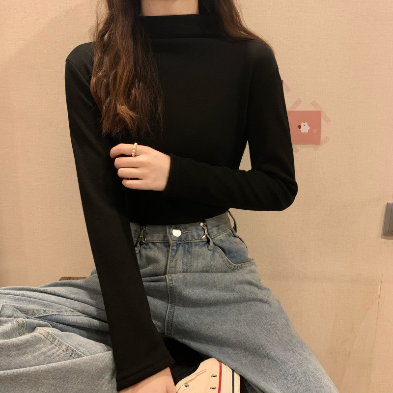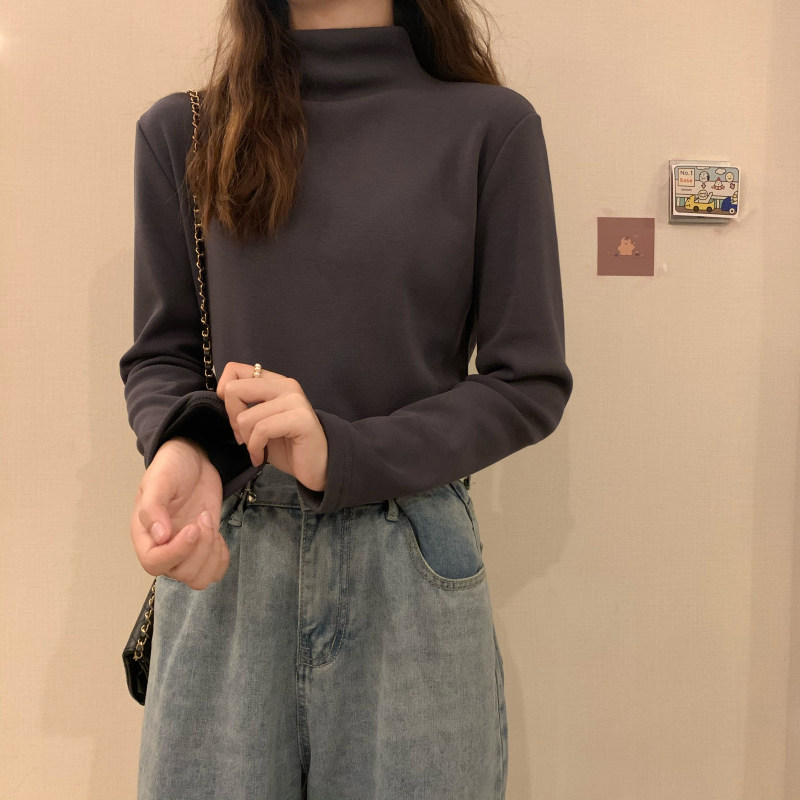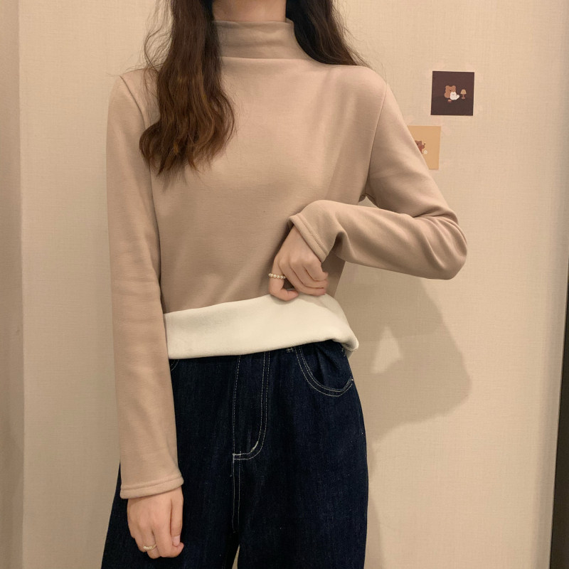 Удерживающий тепло демисезонный утепленный белый базовый приятный телу лонгслив, в западном стиле, высокий воротник