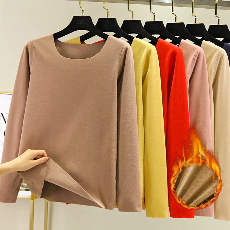 Цветной флисовый базовый приятный телу бархатный лонгслив с круглым воротником, облегающий крой, увеличенная толщина