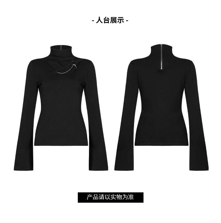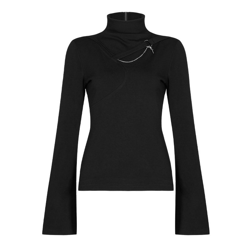 Мегафон, футболка, демисезонный лонгслив, черная универсальная базовая приятная телу цепь, в стиле панк, с рукавом