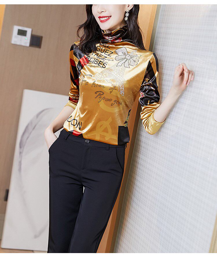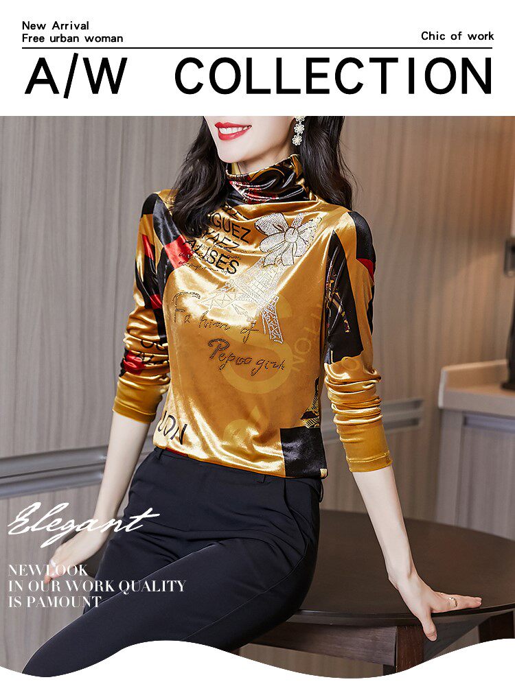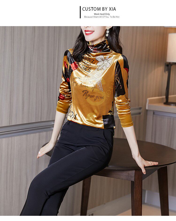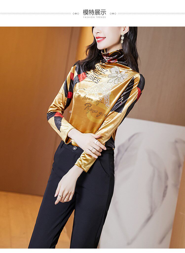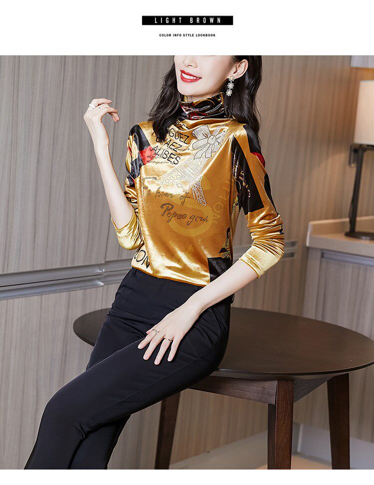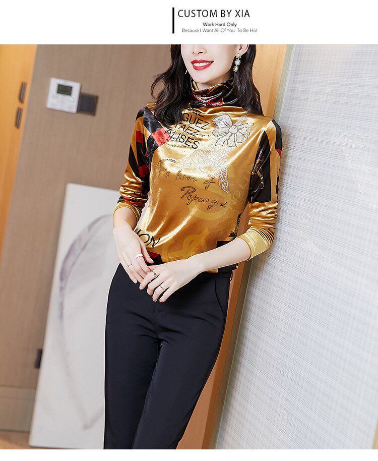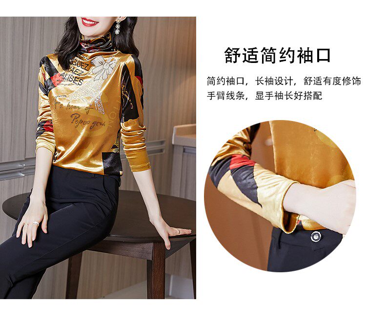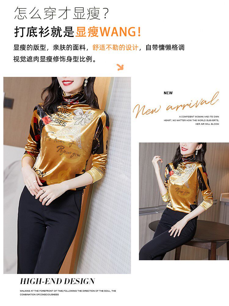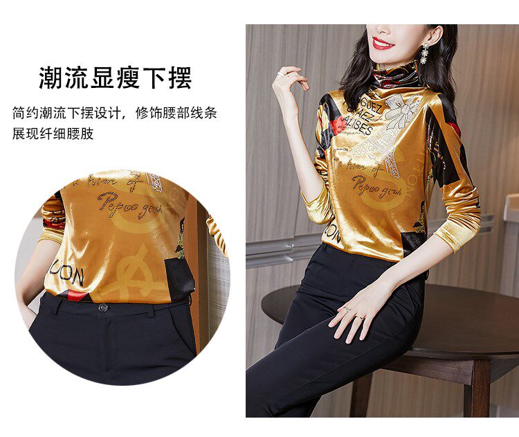 Бессютная рубашка с утолщенной палочкой для женщин осенью и зимней новой модной рубашкой для теплого и модного золотого бархатного топа