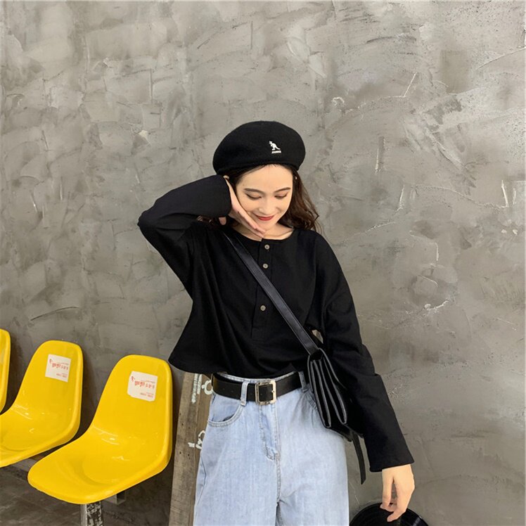 Осенний короткий базовый приятный телу лонгслив для школьников, коллекция 2021, в корейском стиле, квадратный вырез