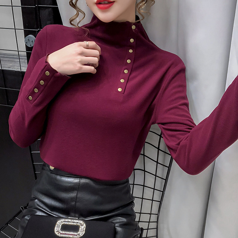 Утепленная бархатная базовая приятная телу весенняя двусторонная кашемировая футболка, коллекция 2021, высокий воротник