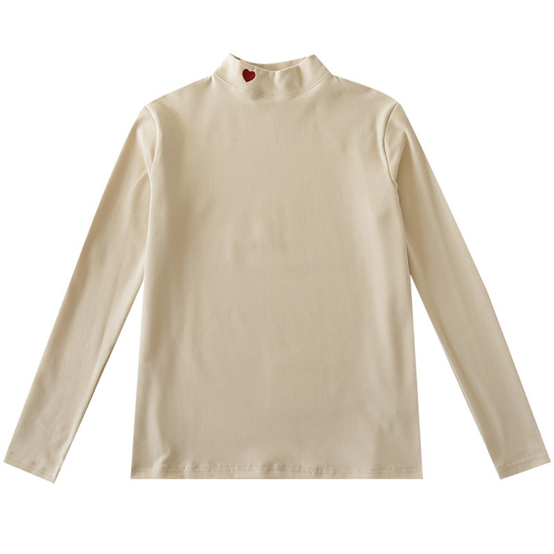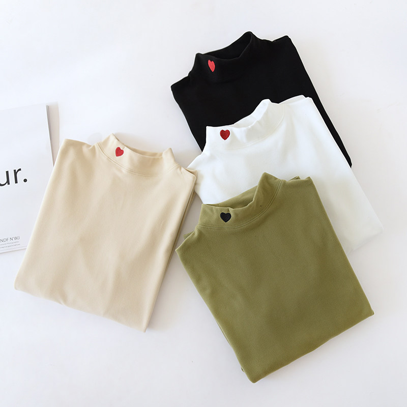 Осенний лонгслив, в корейском стиле, высокий воротник, с вышивкой, в западном стиле