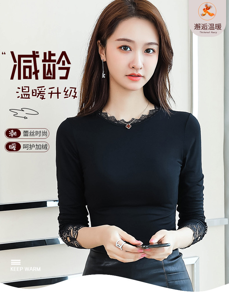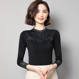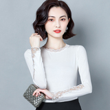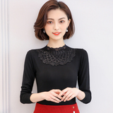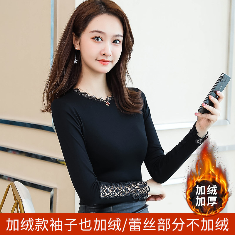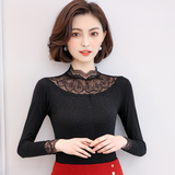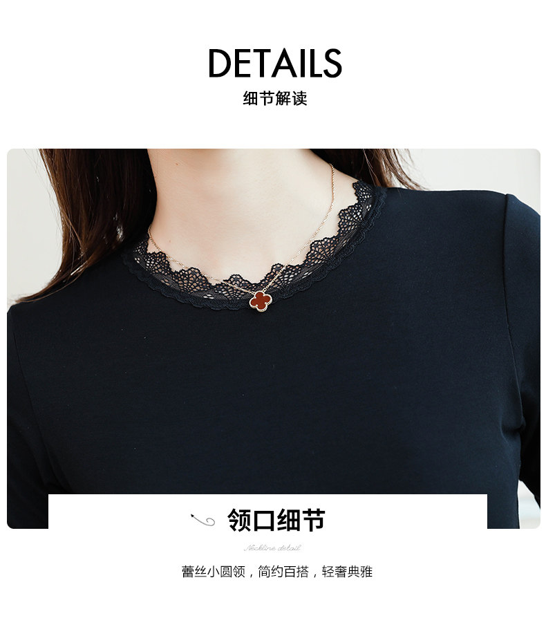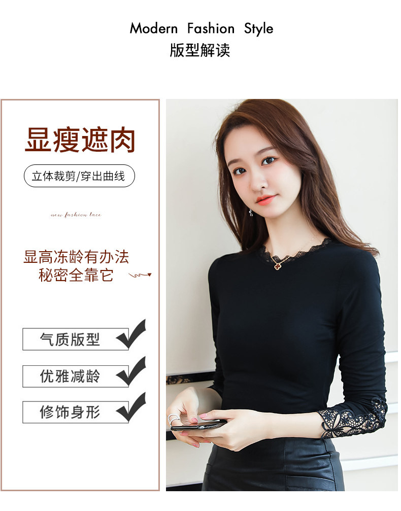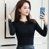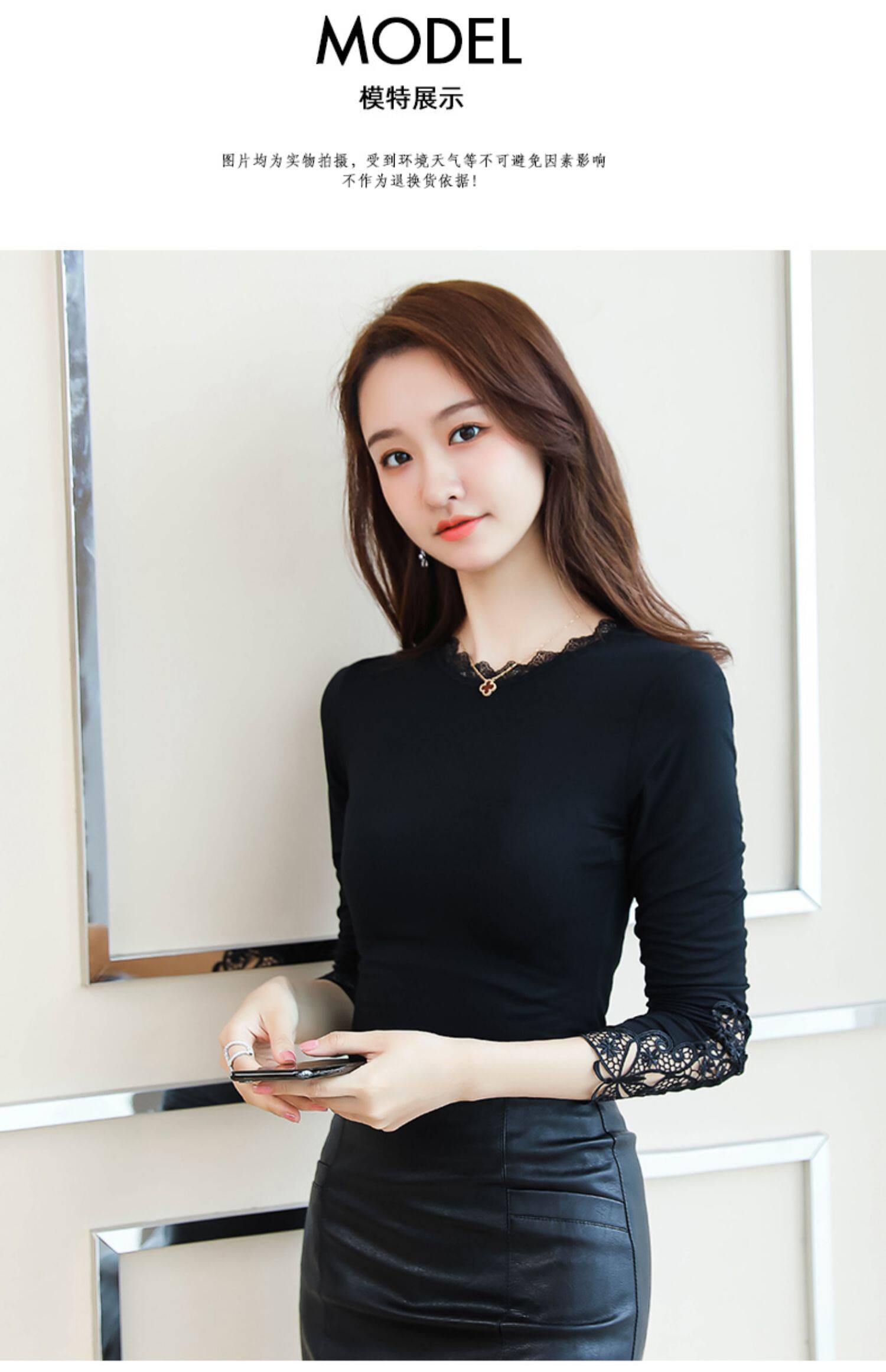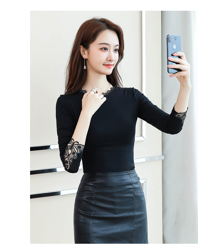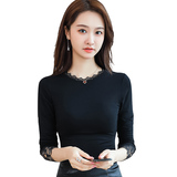Тонкий базовый приятный телу осенний черный кружевной лонгслив, в западном стиле