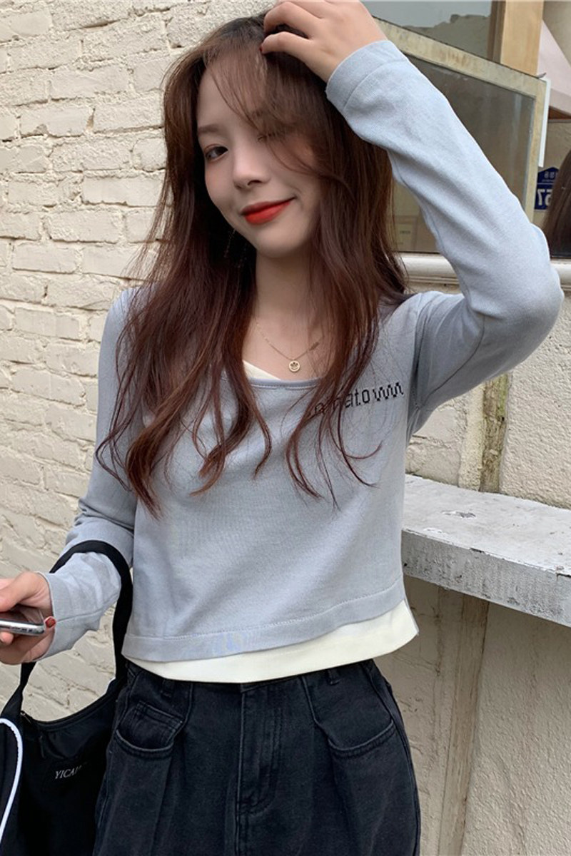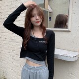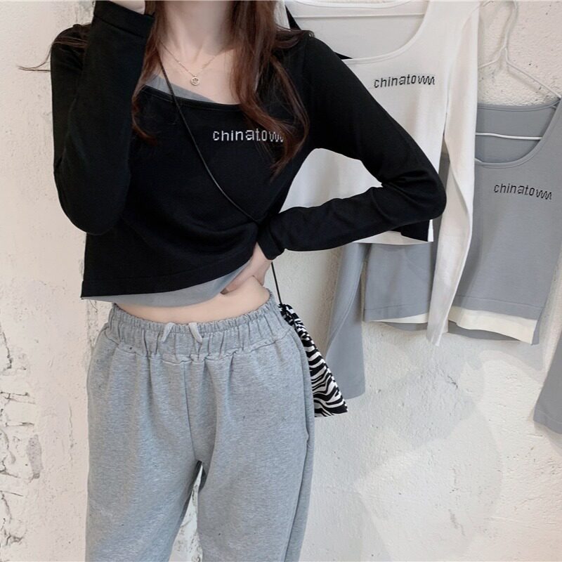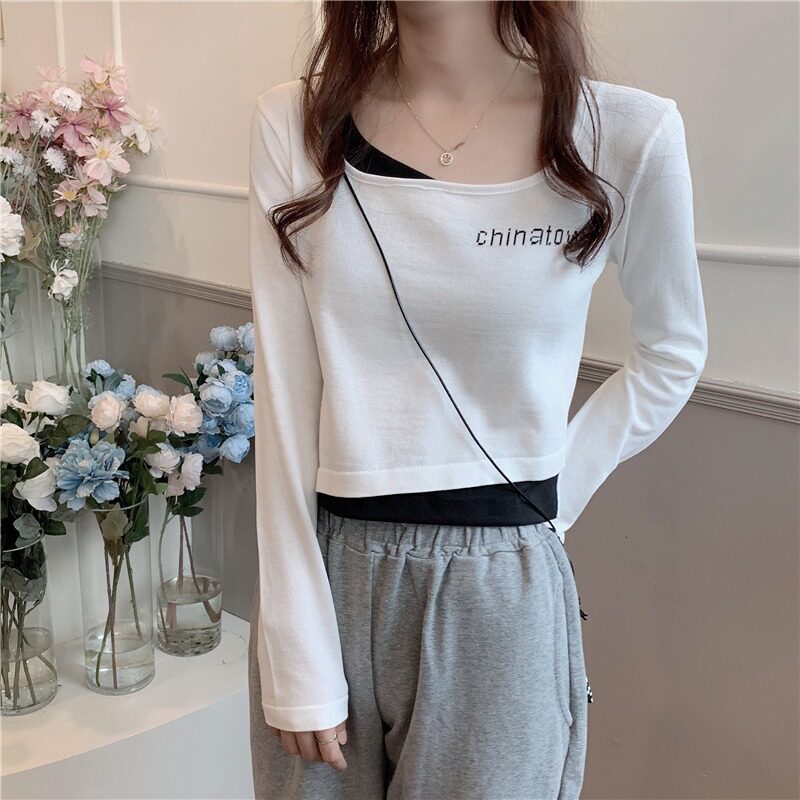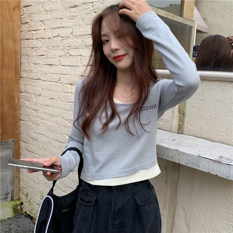 Весенний короткий трикотажный комплект, лонгслив, приятная телу футболка, в корейском стиле, 2021 года