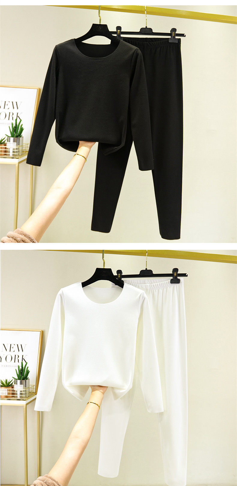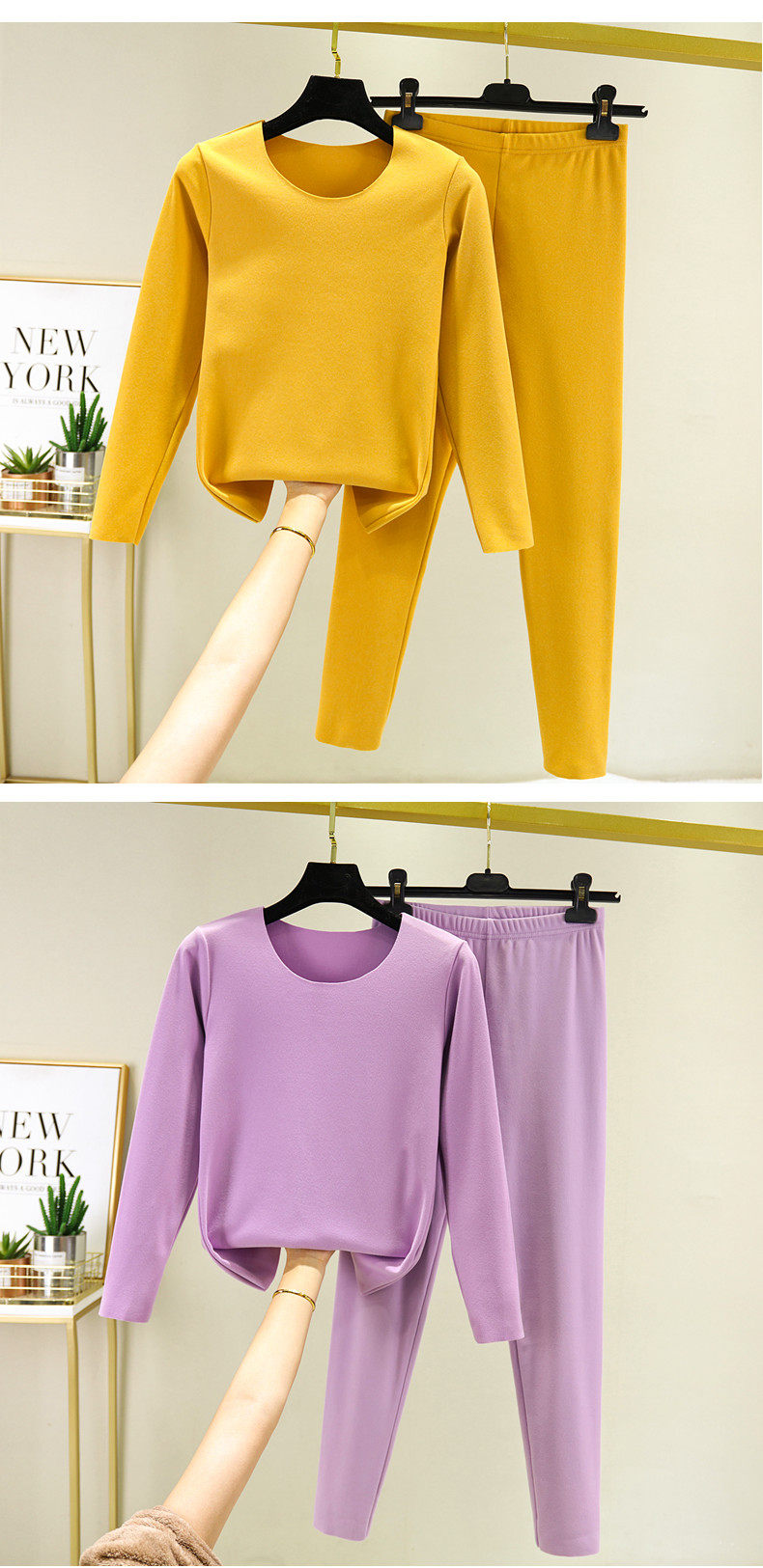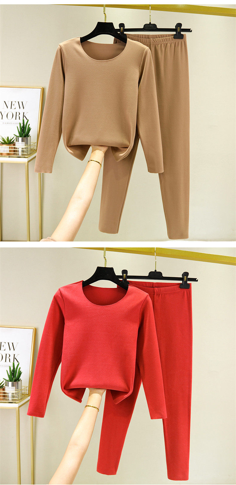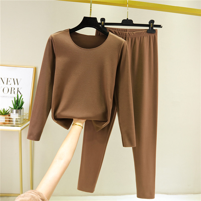 Демисезонный бархатный удерживающий тепло комплект, утепленное термобелье с круглым воротником