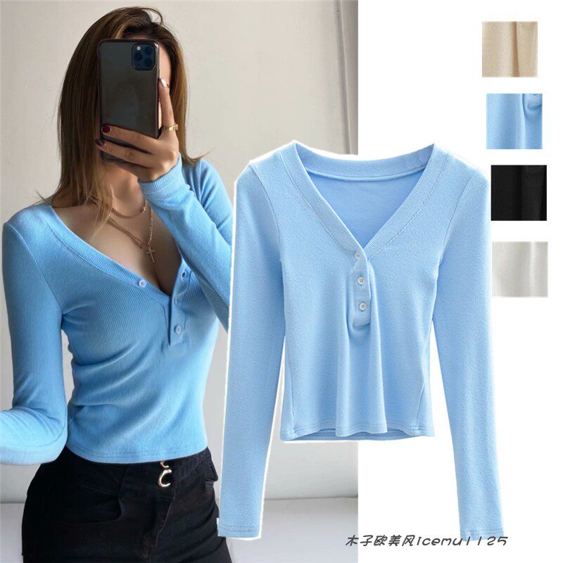 Цветной трикотажный лонгслив, приталенная футболка, европейский стиль, в обтяжку, высокая талия
