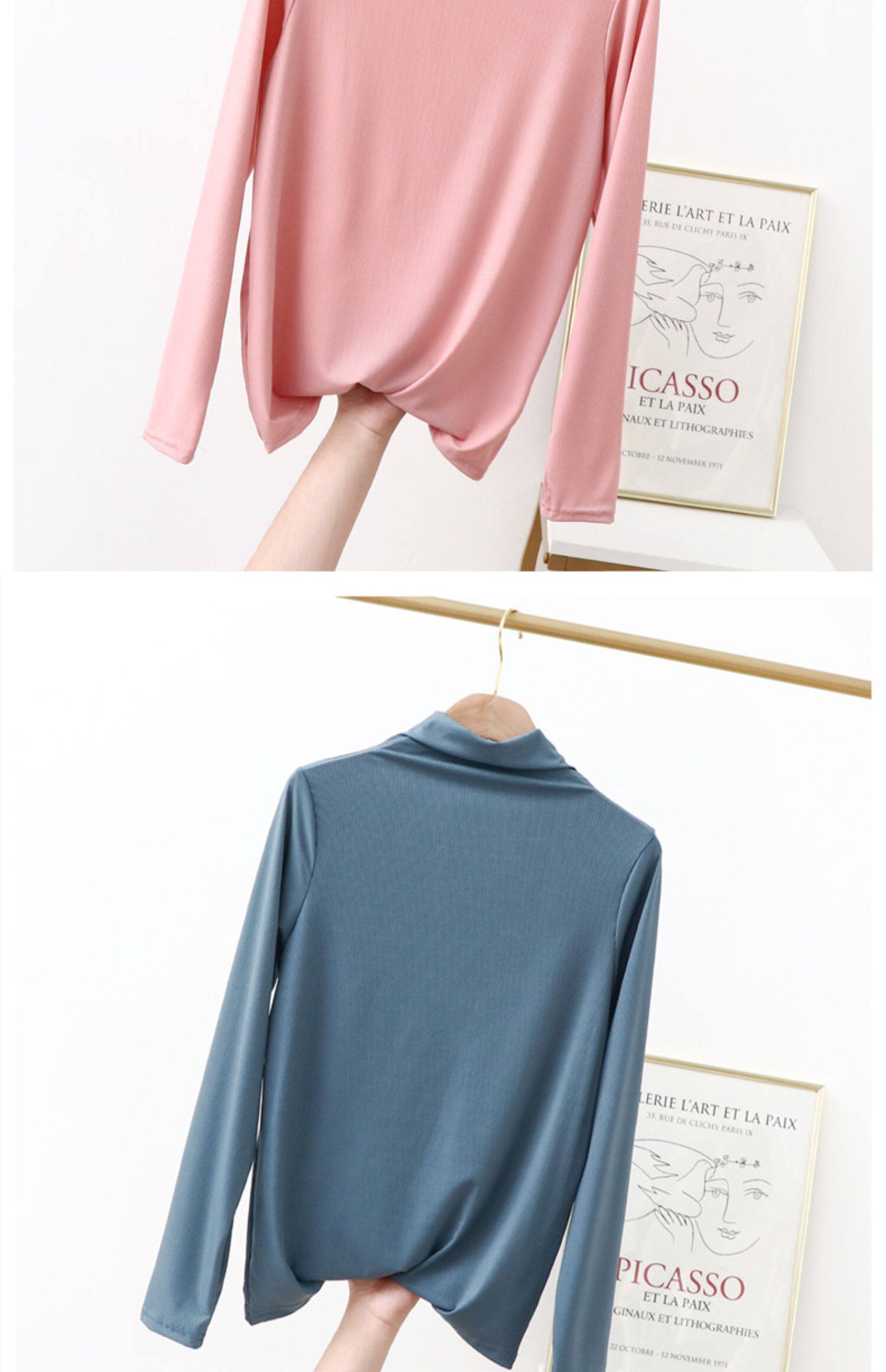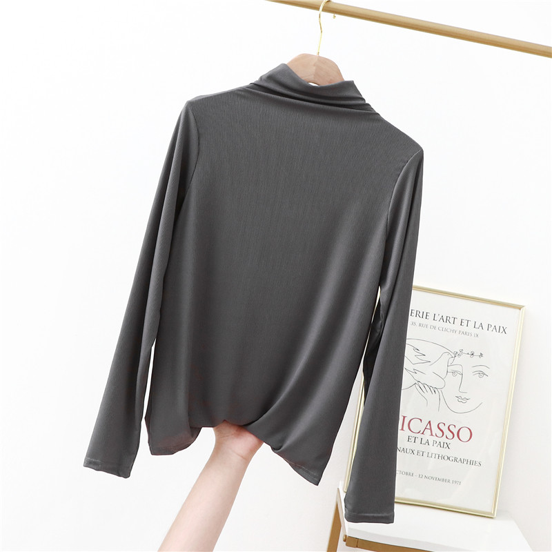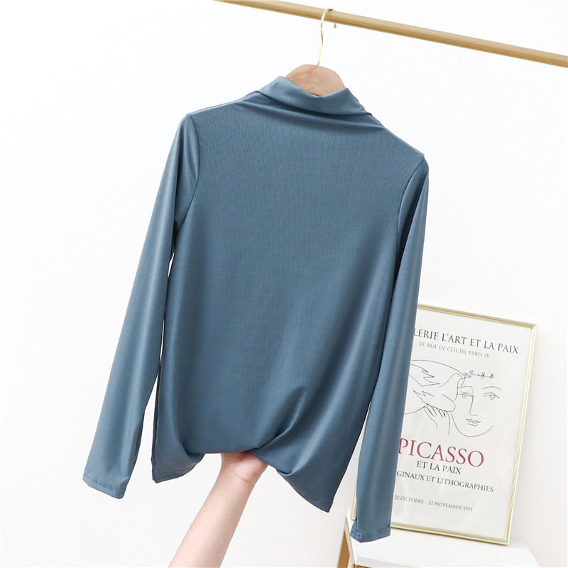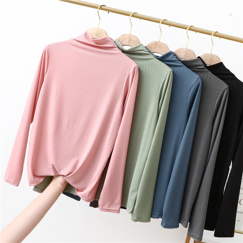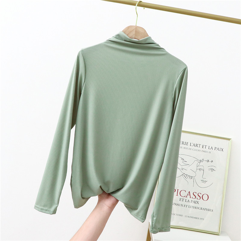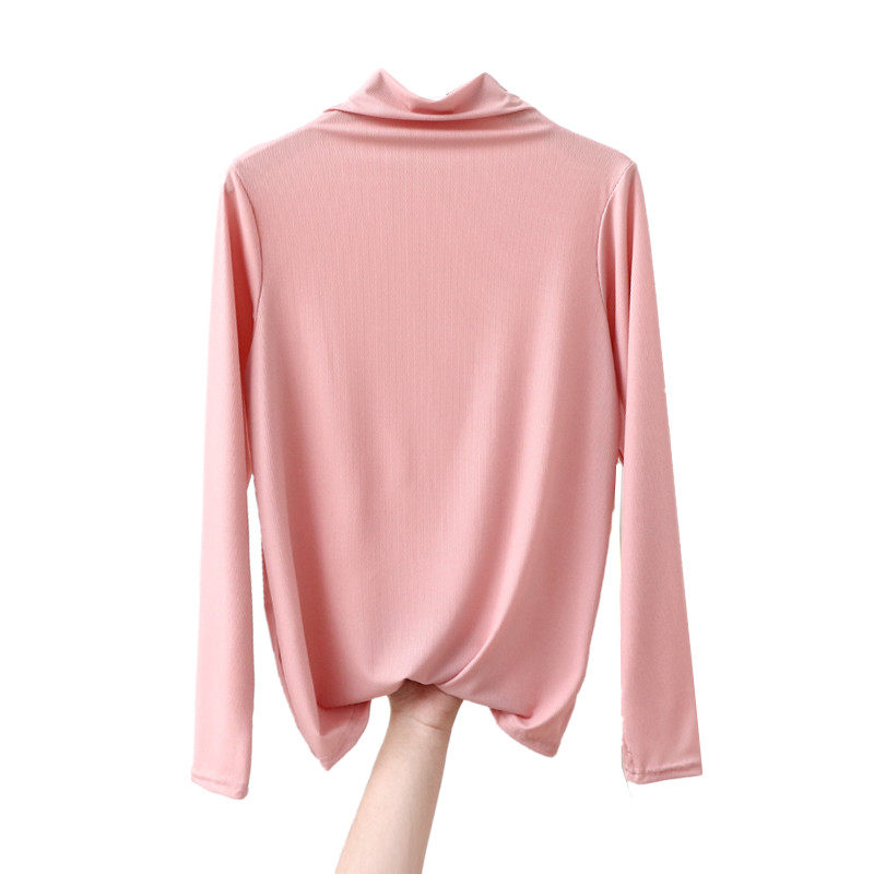 Базовый приятный телу летний тонкий приталенный лонгслив, футболка, высокий воротник, в западном стиле