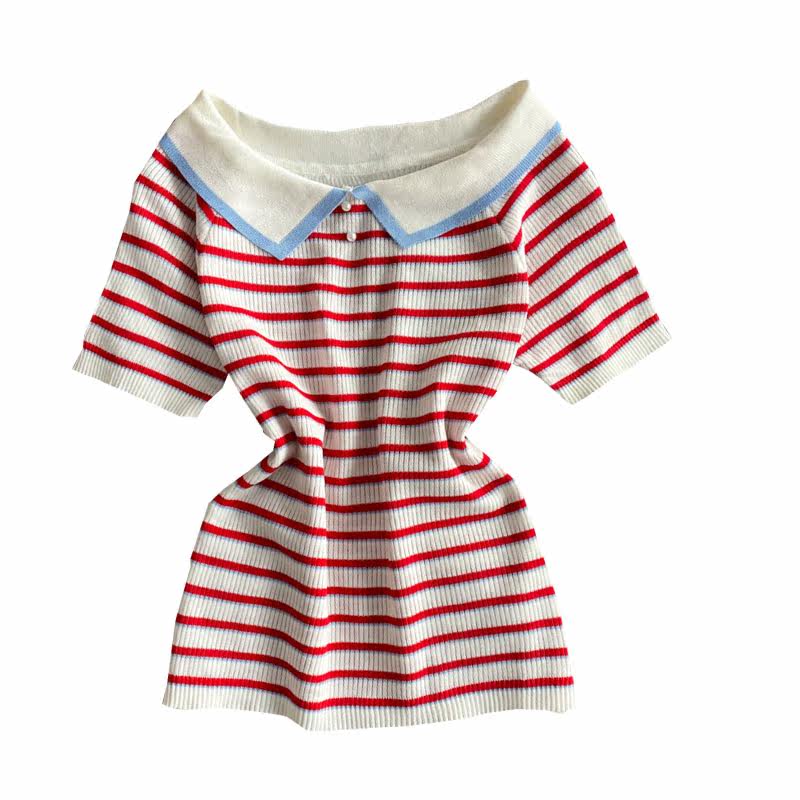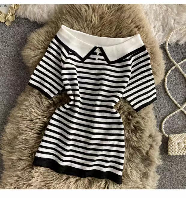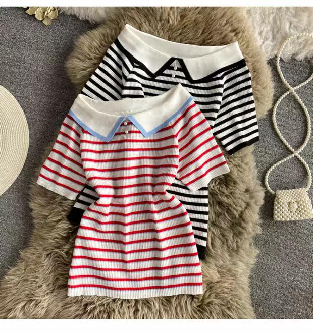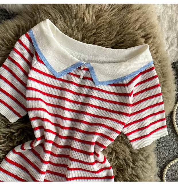 Летняя футболка, приталенная трикотажная кукла, кукольный воротник