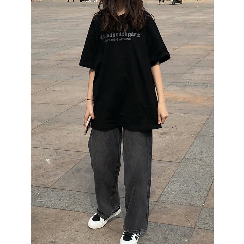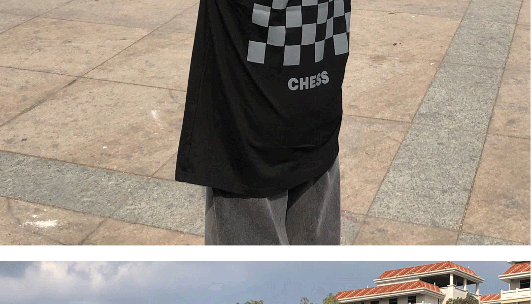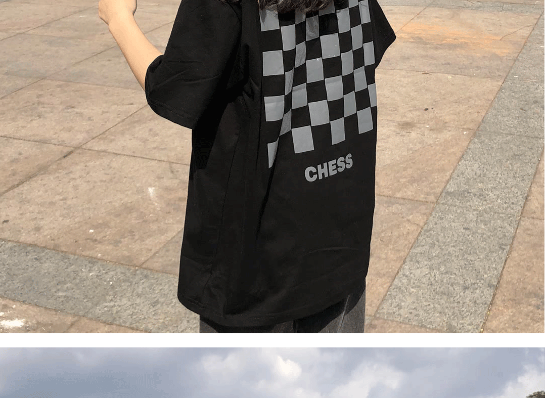 Шахматы, черная брендовая футболка с коротким рукавом в стиле хип-хоп, европейский стиль, в корейском стиле